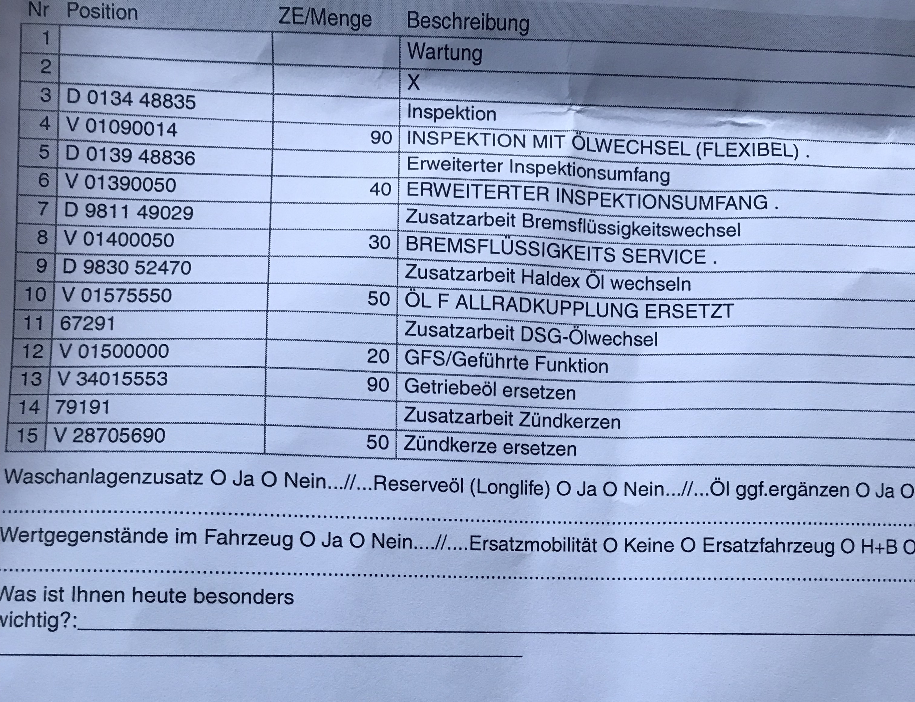 Ich bin ja ein KFZ Mechaniker der alten Schule und bringe Öl mit bzw. wechsel Kerzen, Pollenfilter, etc. normalerweise selber. Aber wie ich auch hin und herrechne, ich komme immer min. auf +0, wenn ich weitestgehend alles selber mache und auch noch die überzogenen Preise reduziere. Und da wäre mein Arbeitsaufwand und der Mietwagen, der im Vertrag dabei ist, noch gar nicht enthalten. Daher meine Frage: WAS ÜBERSEHE ICH???