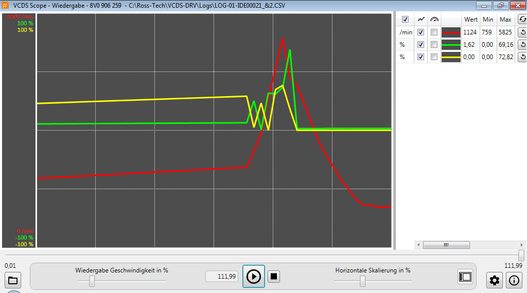 Dann habe ich mit VCDS 2 kurze Logfahrten gemacht...