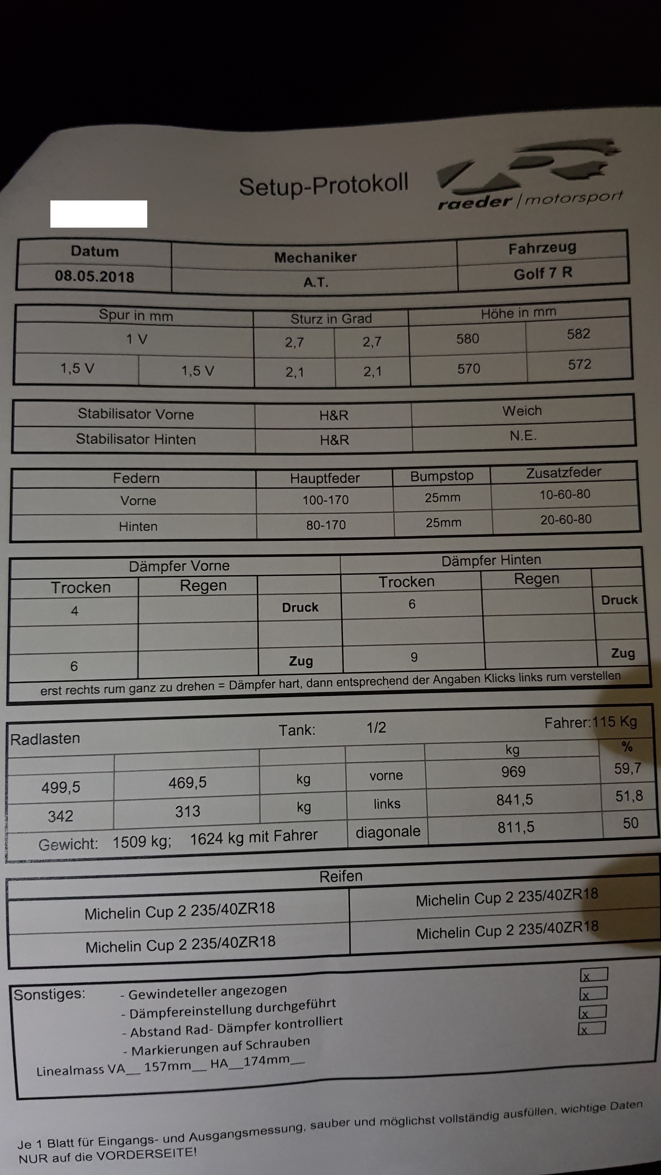 Ich habe freien Zugriff auf einen Achsmessstand, aber leider hat der Besitzer kein wirkliches Interesse daran ein Auto "schneller" zu machen, daher muss ich mich da anders rantasten