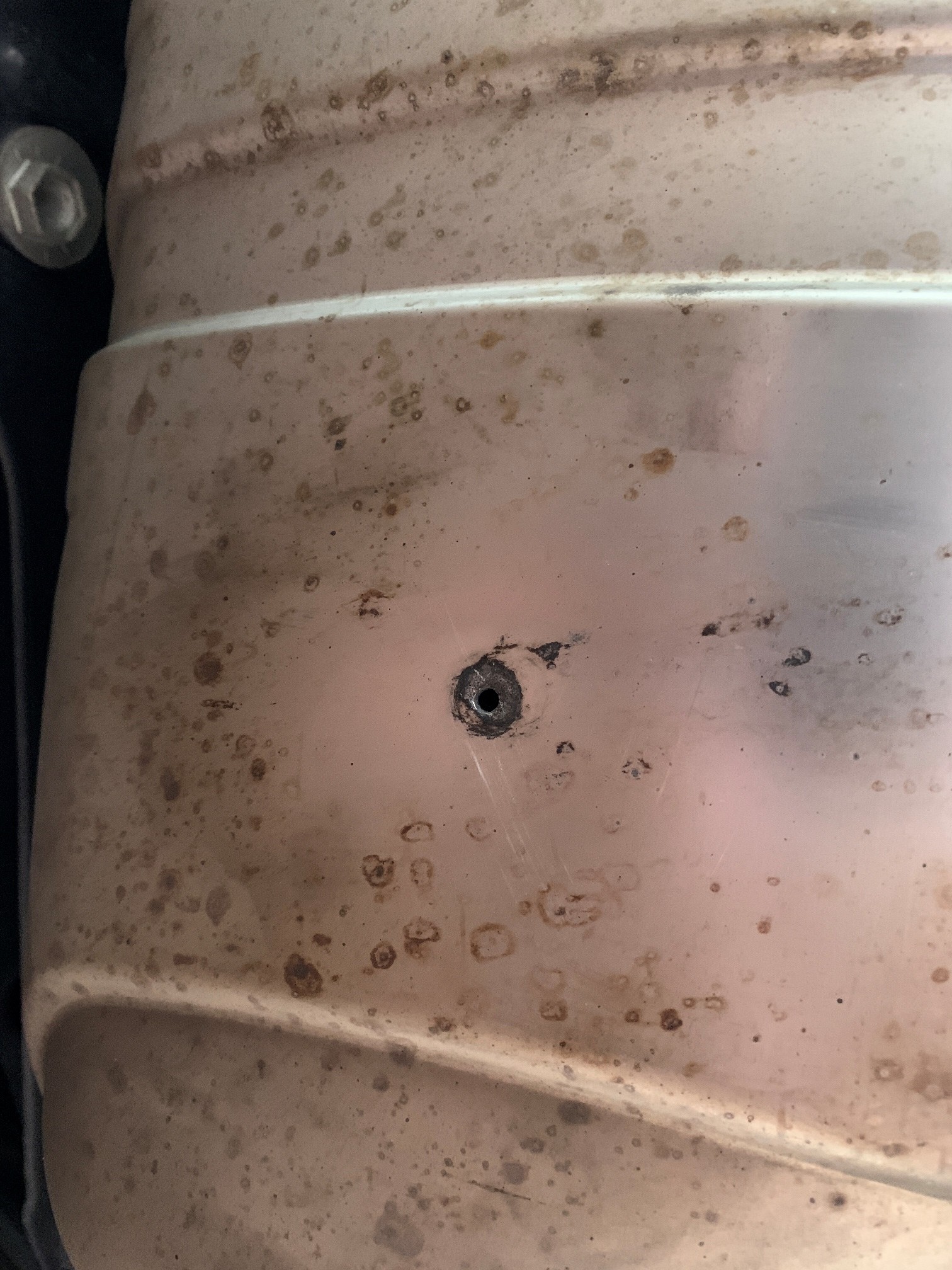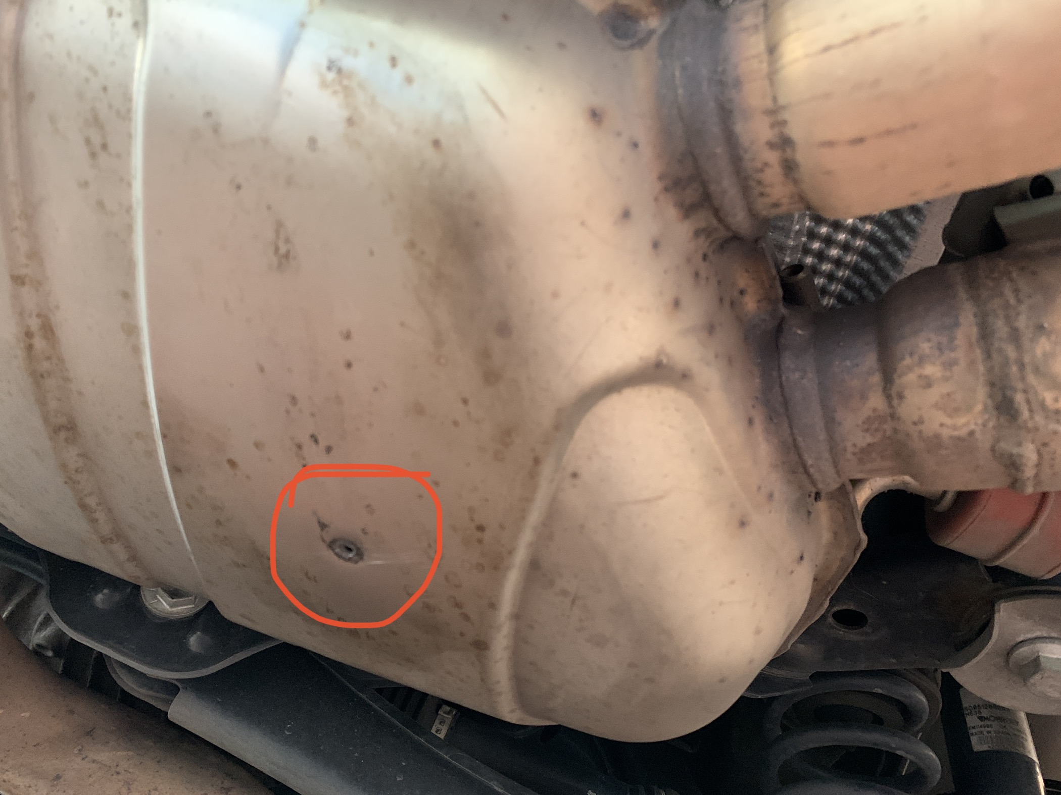 ich habe gestern zum putzen der Auspuffblenden mal unter dem Auto gelegen und mir ist mit Schrecken folgendes Loch aufgefallen: