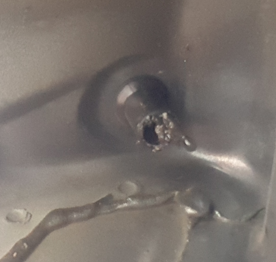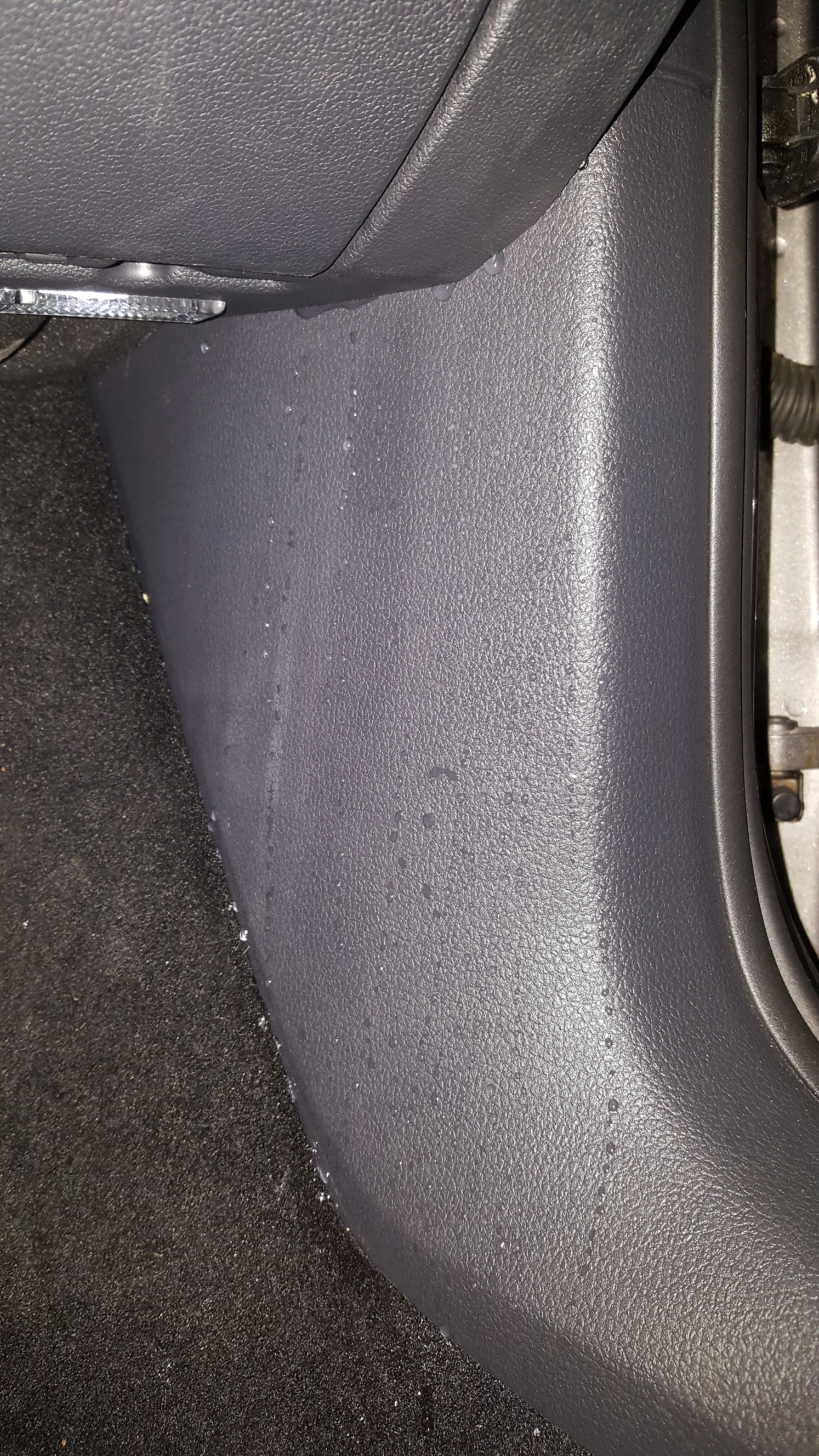 Im Hellen habe ich dann gesehen das Wasser zwischen Handschuhfach und Verkleidung raus tropft. Auf dem Foto sieht man dies super.