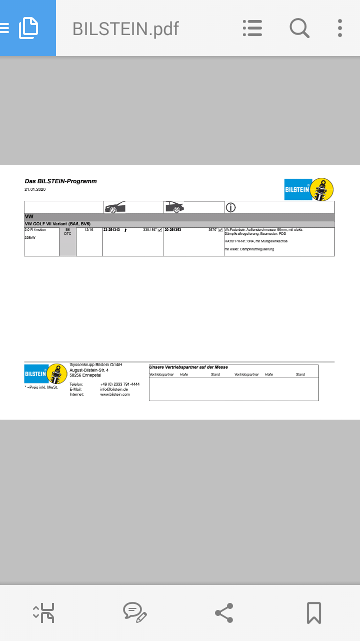es geht um die Bilstein Stoßdämpfer B6 Damptronic. Diese werden in diversen Onlineshops für den Variant angeboten. Stutzig wurde ich, als ich die Dämpfer im Online-Produktkatalog von Bilstein nicht für den Golf finden konnte. Dann habe ich weitergeguckt und festegstellt, dass die Shops, die die Dämpfer für den Variant anbieten, diese auch für den Seat Leon ST Cupra 4Drive 300 anbieten. Für beide Fahrzeuge haben die Dämpfer die gleiche Nummer. Deswegen vergleiche ich die Achslasten der Fahrzeuge, um einen Rückschluss zu bekommen, ob das mit den Gewichten passen würde.