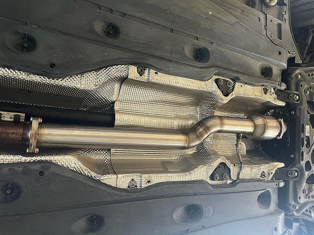 - Besonderheit BTS R500 handmade Edelstahl Downpipe, verstärkt mit 130mm Unterfloor Spezial Kat mit TÜV, ab Ende 2021 auch für OPF Modelle (Alleinstellungsmerkmal). Thermo isoliert, durchgängig 76mm auf OEM ESD Standgeräusch Anpassung TÜV Eintrag 73dbA (optional auch mit lautem bearbeiteten ESD)