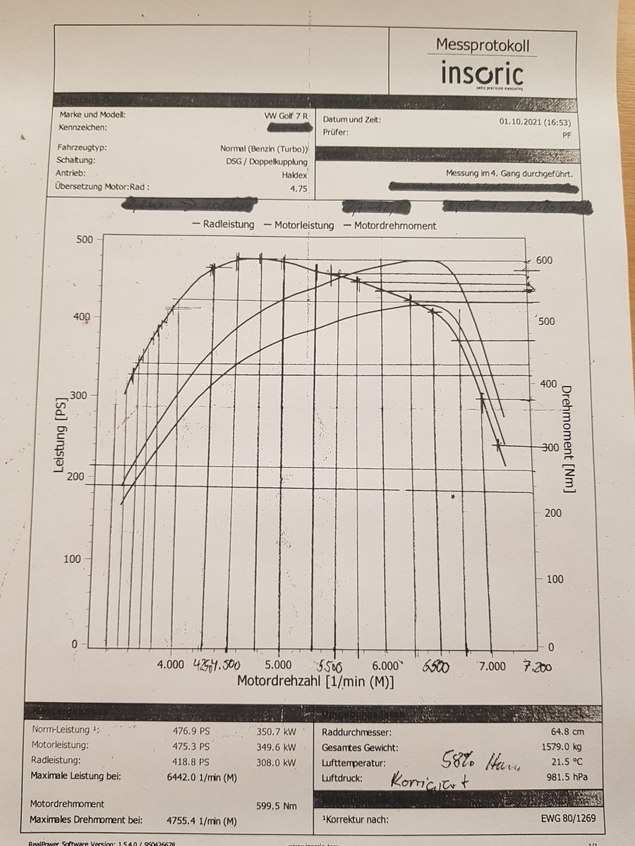 Resümee:nach ausgiebigen Konfigurations-Tests und Vergleich mit anderen Fahrzeugen, reicht die Standardvariante mit OEM LLK/ ohne zusätzliche Verrohrung für 470-475PS aus. Absorbationsdämpfer/ R600 kann man haben, ist aber eher für Sound Fans eine Option. Im Sommer mag für Leistungsfreaks der LLK wichtig sein, es geht aber auch bei 37°C mit OEM.