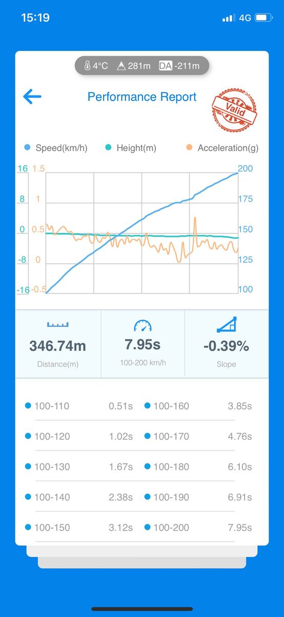 Zeiten: 100-200km/h 1. Run Winterradsatz 235/35/19 W: