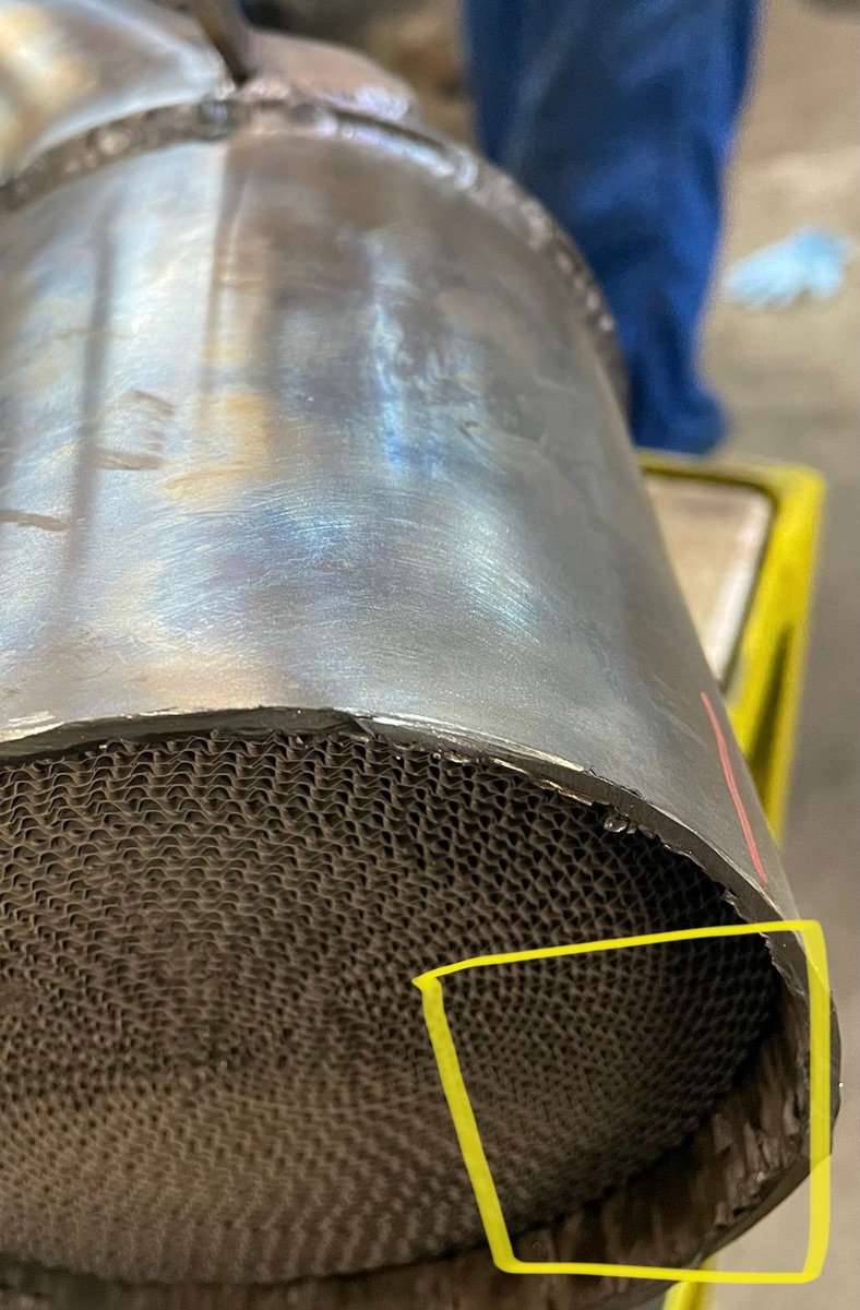Das ist aber nicht weiter schlimm, der Motor kann halt nicht lange Vollgas. Der Tuner meines Vertrauens hat mich immer wieder gewarnt. „Vollgas über 270km/h max. 30 Sekunden!“ Das war der 3. Motor (Golf 7r, Clubsport und nun wieder Golf 7r FL) innerhalb von vier Jahren. Wie immer Kolben Nr. 2 mit Ringstegbruch, allerdings diesmal auch der HJS-Kat in einer Ego-X Downpipe den Geist aufgegeben. (Er ist um 1,4cm abgesackt). Meine Leistungssteigerung ist eingetragen und ich habe nachweislich kein Schubknallen programmieren lassen. Über den nicht vorhandenen Kundenservice von Felgen-Doc und HG-Motorsport schreibe ich aber separat. Wahnsinn was für intelligente Leute die haben. Die haben an einem Endoskop-Foto (erstes Foto des Kats) erkannt, dass ich Schubknallen programmiert habe, also keine Gewährleistung 😂😂😂😂