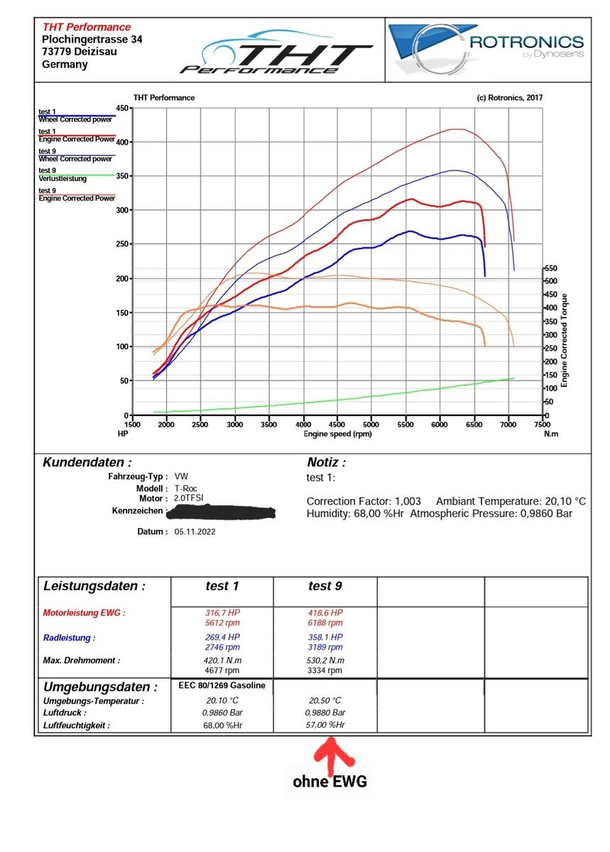 Troc R von 2021 mit dem neuen EA888 Gen4 Motor, 300ps 400Nm, berechnet 315Ps 429Nm, Gewicht 1490kg(1/4tank)+78kg, Akrapovic.