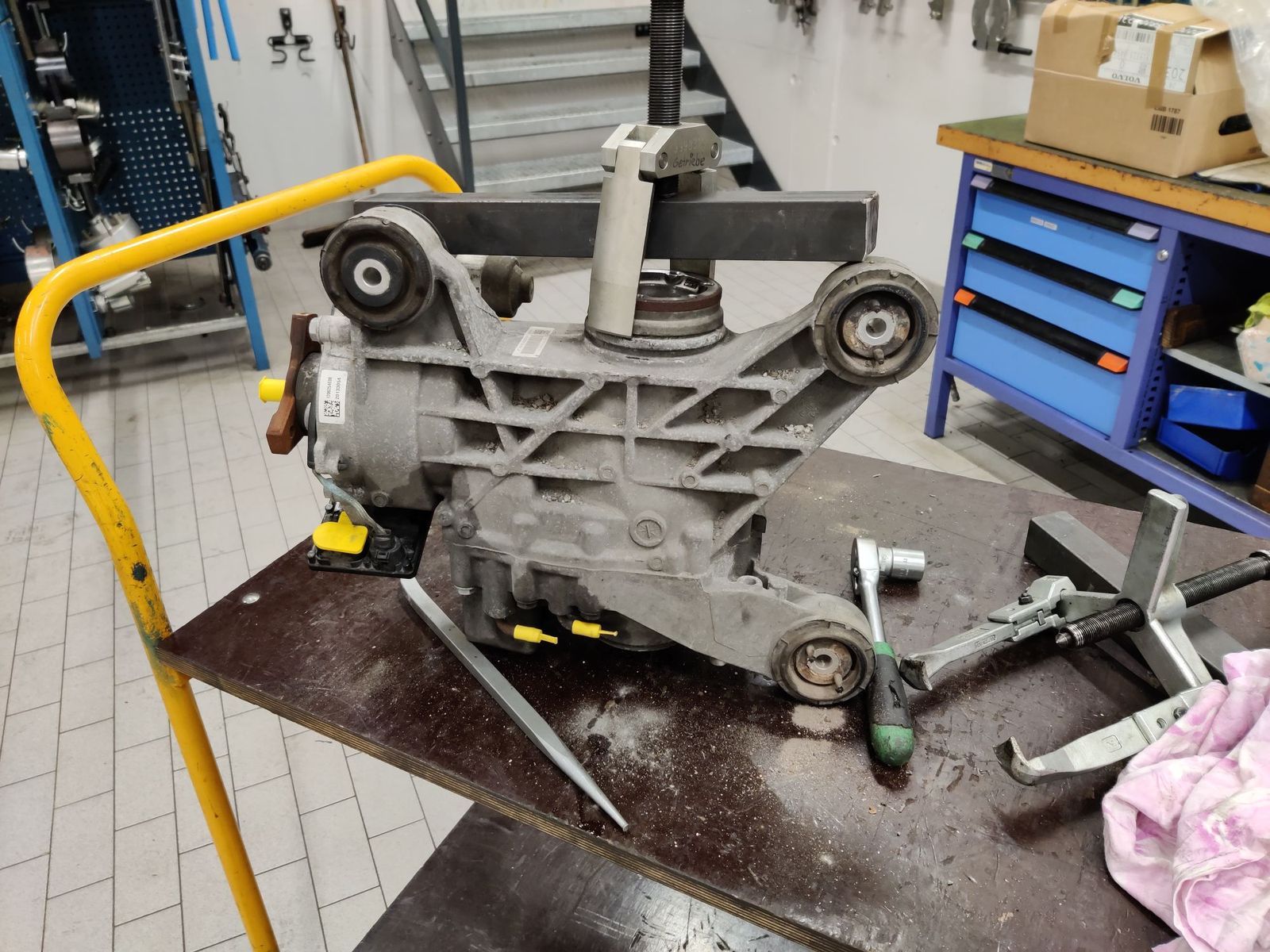 Beim zerlegen wurde dann auch klar wieso, das Rechte Ausgangswellenlager hatte einen Schaden. Da es keine Reparaturanleitung gibt so viel mir bekannt ist werde ich für mutige welche es sich zu trauen und auch das nötige Fachwissen und Werkzeug zur Verfügung haben diese Arbeiten selber aus zu führen versuchen die Arbeit zu Beschreiben. Ach ja das neue gebrauchte Hinterachsgetriebe hat 88tkm und ist vom Baujahr 2014 und es gibt keine Informationen über den Wartungszustand.