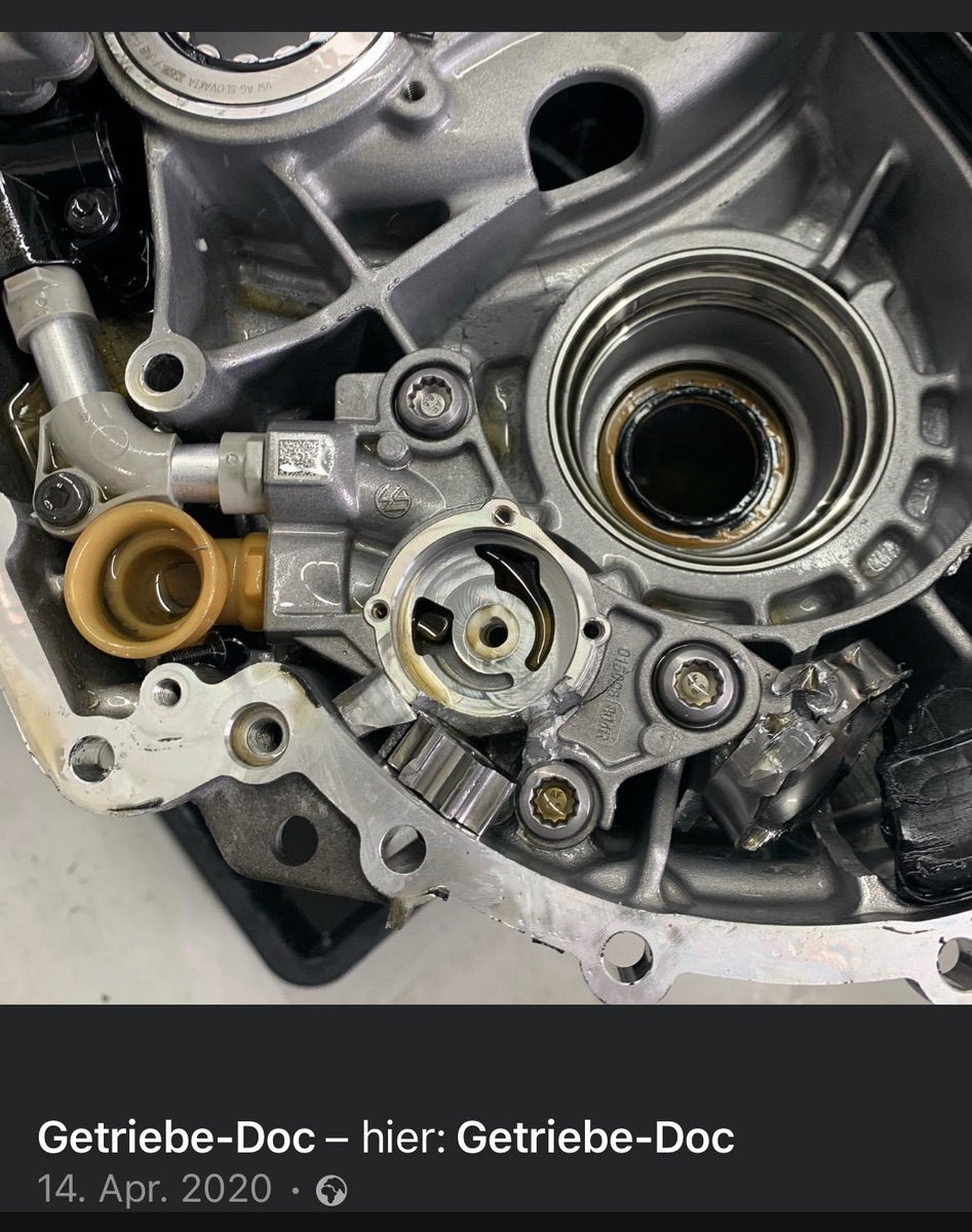 Das ist der Deckel der Zusatzhydraulikpumpe aus der VW Serviceaktion 34K1. Der löst sich auch ohne Tuning.