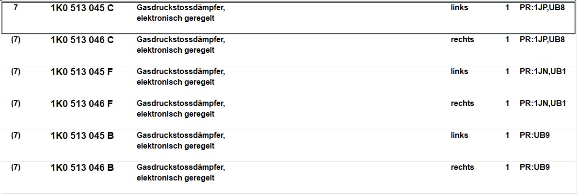 Kann mir jemand die Teilenummer für den/die Stoßdämpfer hinten sagen für meinen 6R mit 5 Türen, DSG und DCC? Bei Bedarf kann ich auch die Fahrgestellnummer mitteilen. Danke.