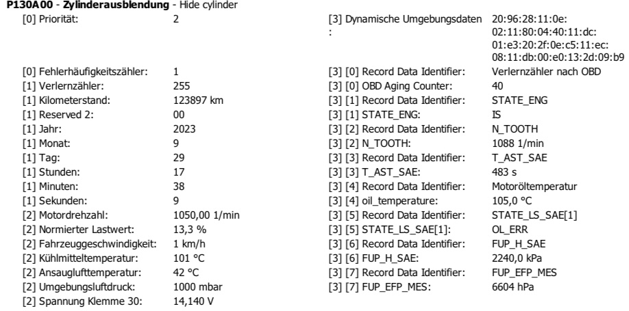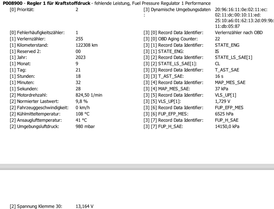 Im Fehlerspeicher hab ich heute folgendes gefunden: