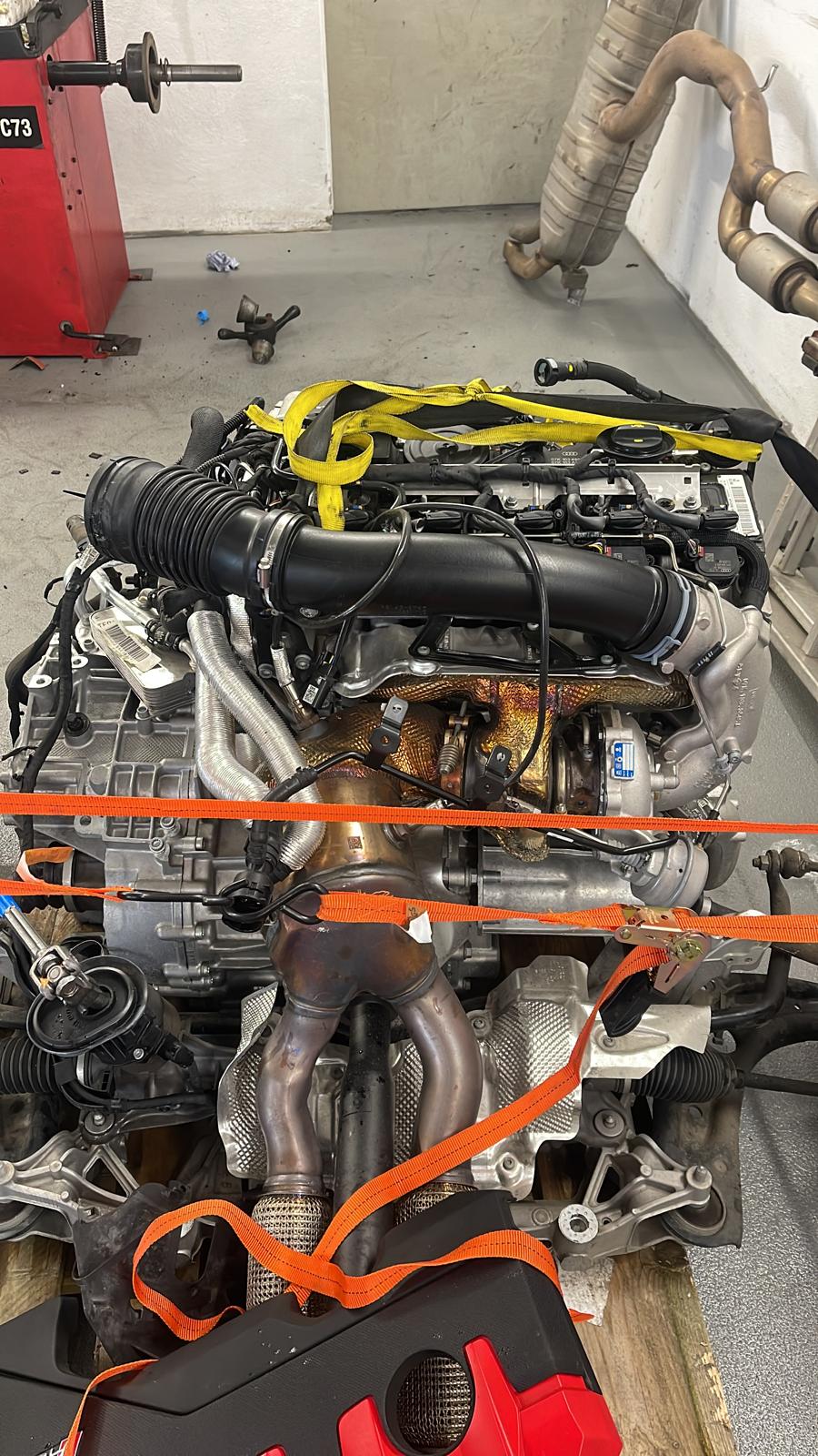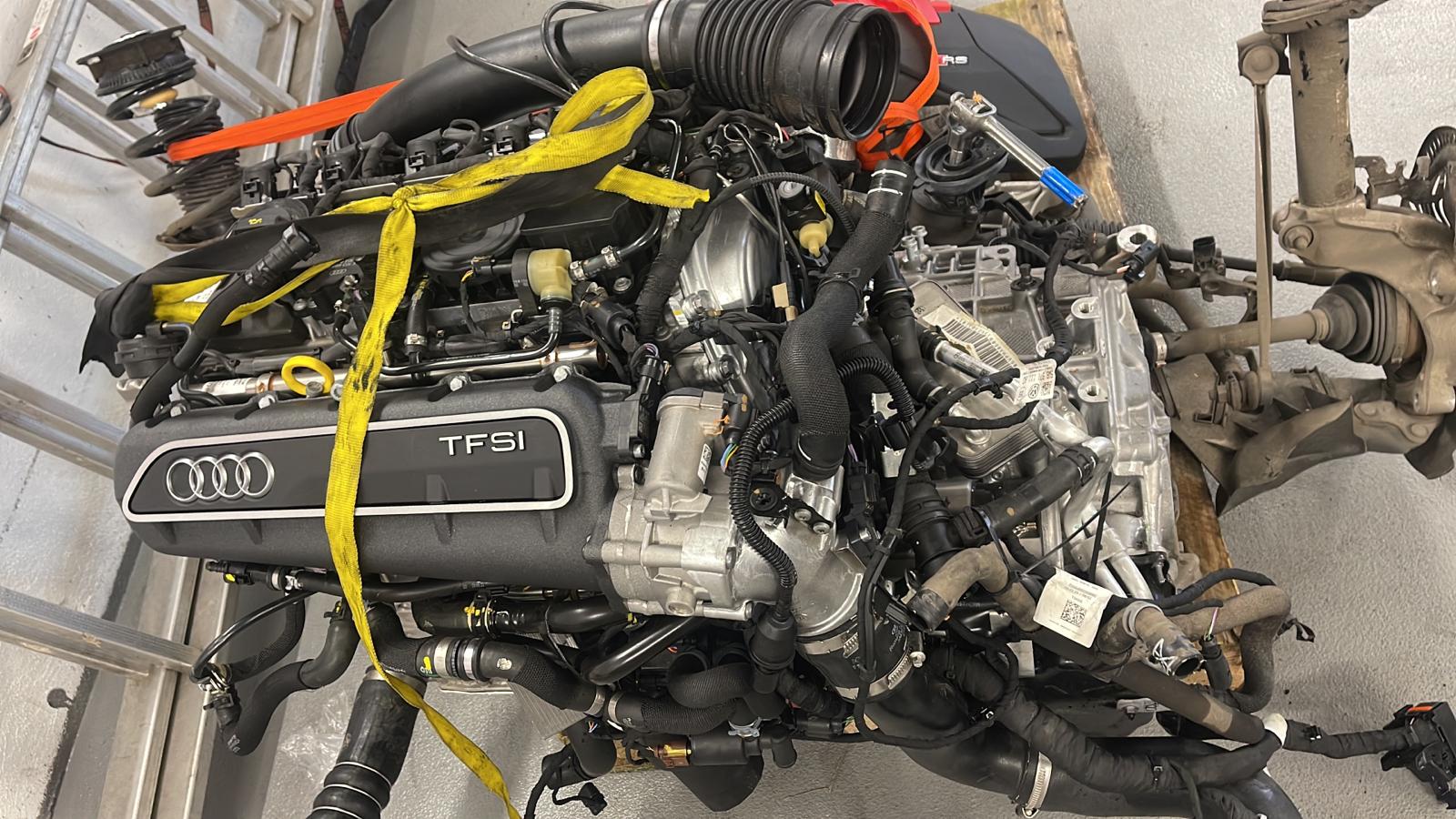 Er hat die komplette Vorderachse, Kabelbaum, Kühler, Auspuffanlage, Motor und Getriebe von einem RS3 und könnte mir das in der Mittagspause zusammenbauen. 😂😂😂