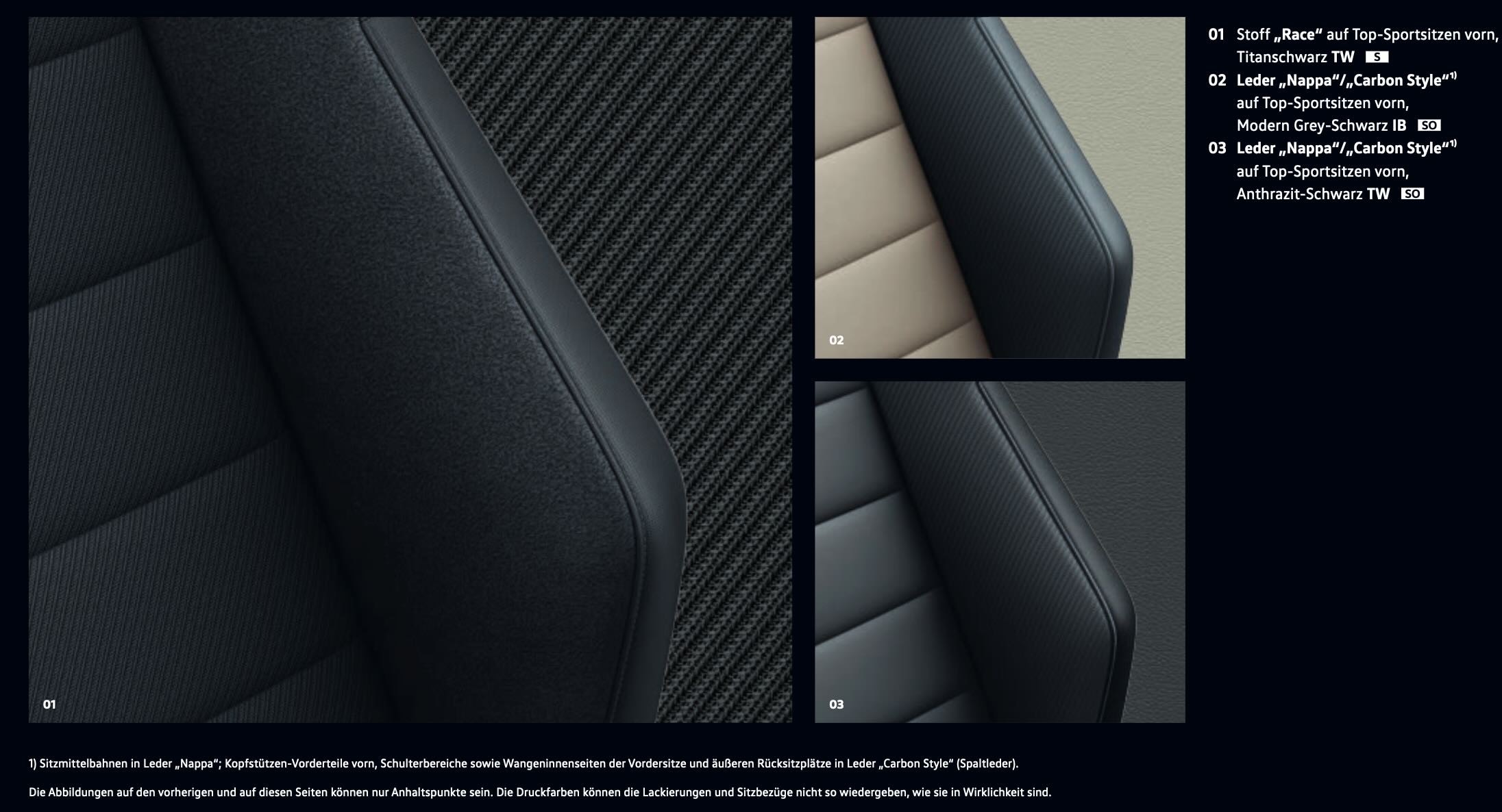 Wenn ich richtig recherchiert habe, ist beim FL grundsätzlich eine Version mit und ohne OPF gebaut worden. Zudem gab es, zumindest in Deutschland, ein Performance Paket. Erkennbar an silbernen Sätteln, dabei war eine Vmax Aufhebung (auf 270?) und wohl noch anders abgestimmte Fahrmodis (?). Es gab als Option verschiedene Bezüge von Stoff über Stoff Alvantara und Leder (teilweise Carbon-Leder). Ferner Glasdach, 3 verschiedene Navi Varianten (?), eine digitale Tachoeinheit, Dynaudio Sound (sehe ich selten, würde mich sehr interessieren) und wohl noch allerlei anderes (LED-Licht?, Keyless, adaptives Fahrwerk). 7 Gangs DSG beim Variant offenbar Serie.