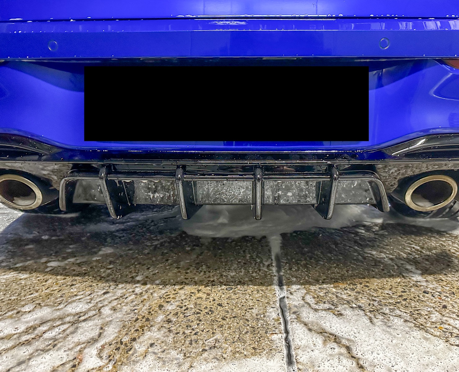 Der Diffusor hat endlich Flaps an den Seiten, die habe ich sehr vermisst. Das Design hat 3 "Etagen" was bestimmt Geschmacksache ist. Der Diffusor wird plug&Play gegen den originalen getauscht. Da die Ausschnitte für die Endrohre 1:1 dem Original entsprechen werden alle gängigen Anlagen und Endrohre passen. Der Diffusor kommt aber etwas weiter raus, wodurch grössere Endrohre denke ich noch stimmiger aussehen werden.