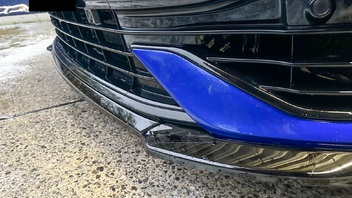 Die Frontlippe ist 3 Teilig und geht richtig schön um die Schürze herum, nimmt das Seriendesign auf und sieht meiner Meinung nach Hammer aus. Aber die ist relativ tief und geht auch weit vor, Rampenwinkel ist also schon eingeschränkt. Die Frontlippe ist von Unten Hohl, was ganz normal ist.