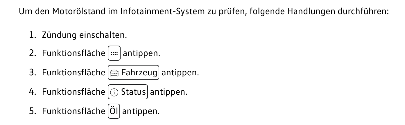 laut Bordbuch soll man den Motorölstand auch im Infotainment ablesen können.