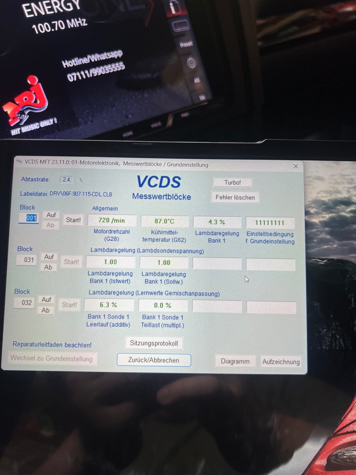 Ich lade mal dementsprechend die Messwertblöcke hoch, wann der Fehler bei wieviel % Lambda Lernwert additiv steht und eines nach knapp 200km AB.