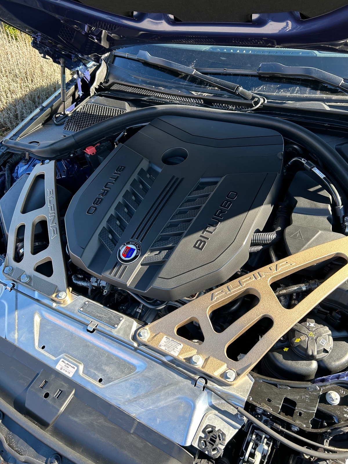 Optisch ein Bmw 3er (M340i) unterscheidet sich der GT durch goldene Schmiedefelgen (wurden bei mir durch silberne ersetzt), goldene Alpinastreifen (bei mir silbern) Canards vorne am Spoiler und einen groesseren Diffusor hinten. Im Motorraum hat er noch Domstreben. Optisch sieht meiner aus wie ein normaler B3 mit 462 resp 495 Ps aber unterm Blech schlummert GT-Technik.