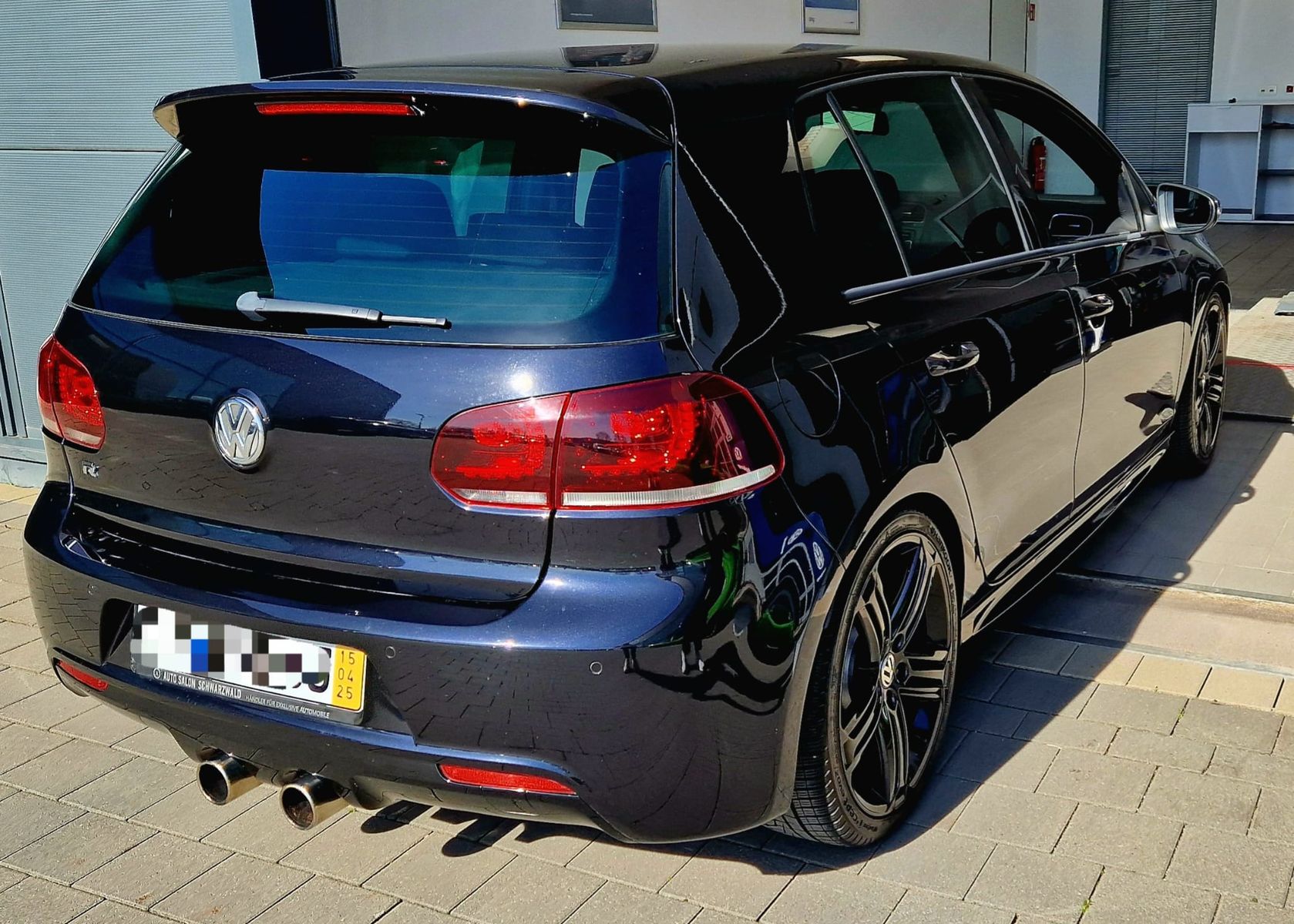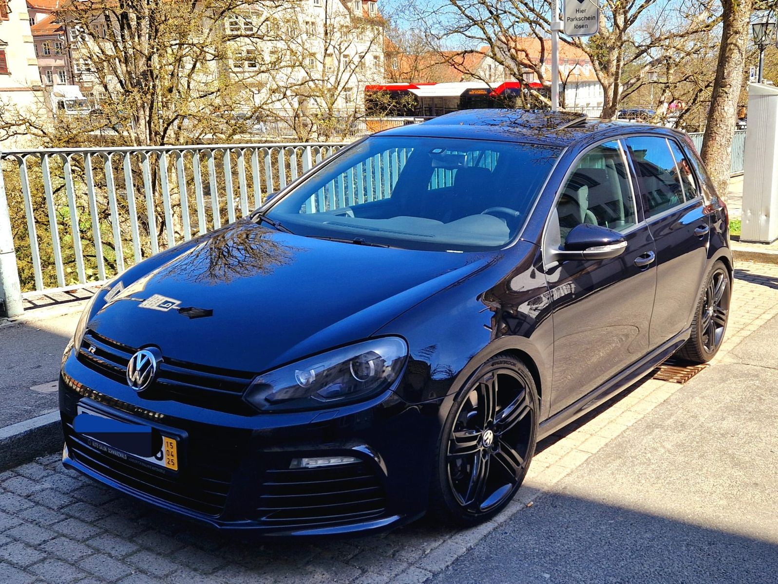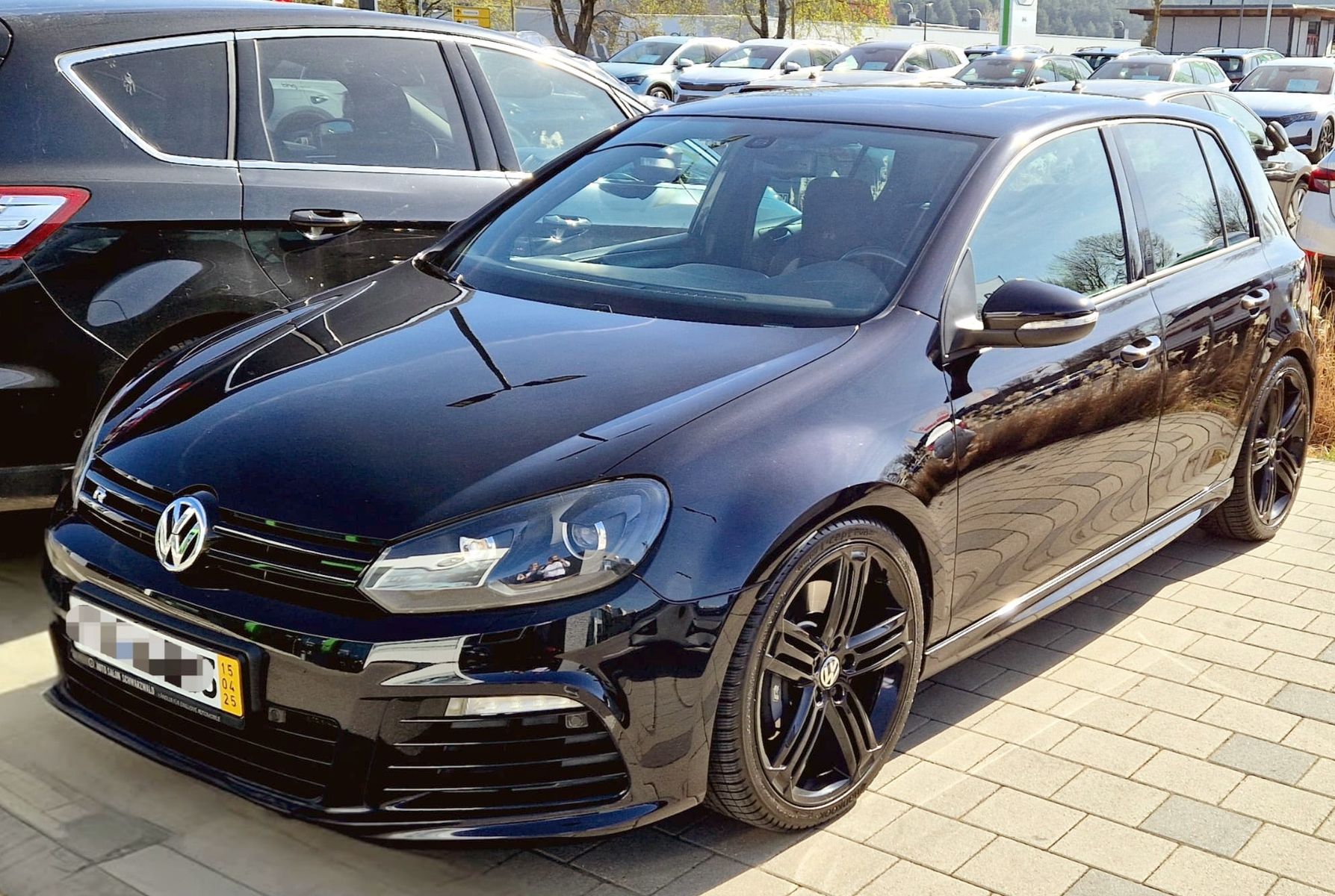 Anfang 2025 war dann viel los im Leben von mir und meiner Frau - auch mit der Folge, dass wir dringend einen neuen Zweitwagen brauchten. Ich hatte noch eine alte Suchanfrage für Golf VI R als Handschalter aktiv und habe - ohne zuviel zu erwarten - wieder reingeschaut. Da stand er. Komplett schwarz, scheckheftgepflegt, (fast) perfekte Ausstattung, wenig KM für einen 6er. Vorbesitzer war ein Herr gesetzteren Alters, der nunmehr ein größeres Auto benötigte. Alle Serviceintervalle waren penibelst eingehalten, bis auf H&R-Tieferlegungsfedern auch alles Serie. Mir hat es der Golf VI seit jeher angetan (mehrere bei Freunden und Familie, bin ich immer gern gefahren, egal welche Motorisierung), und nachdem das Angebot gestimmt hat und auch ein unabhängiger Technik-Check grünes Licht gegeben hat, haben wir uns ein Herz gefasst, zugeschlagen und ihn gleich aus dem Schwarzwald zu uns nach Bayern mitgenommen ![]()