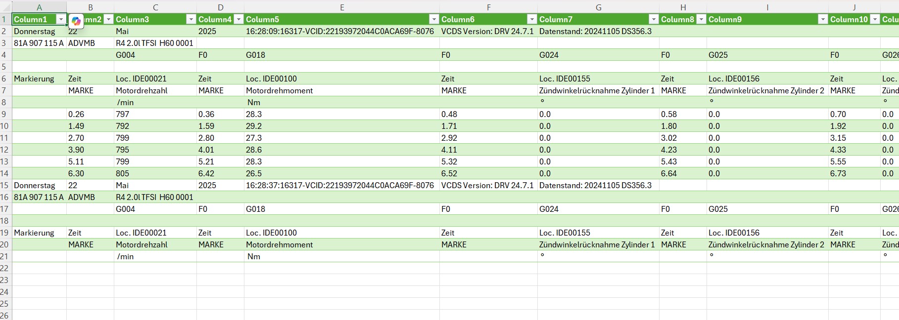 ich logge seit ein paar Tagen mit VCDS immer mal wieder, sobald ich am Motor oder den Umgebungsbedingungen etwas ändere.
