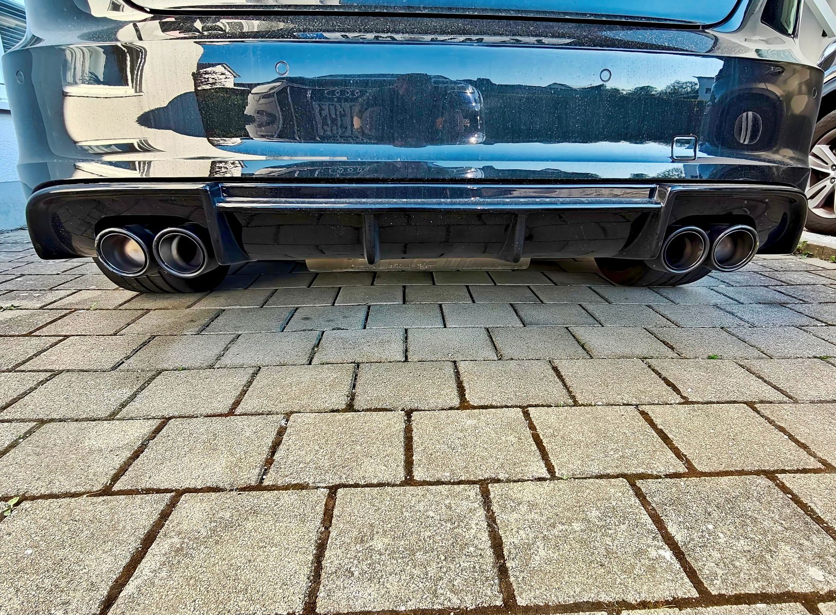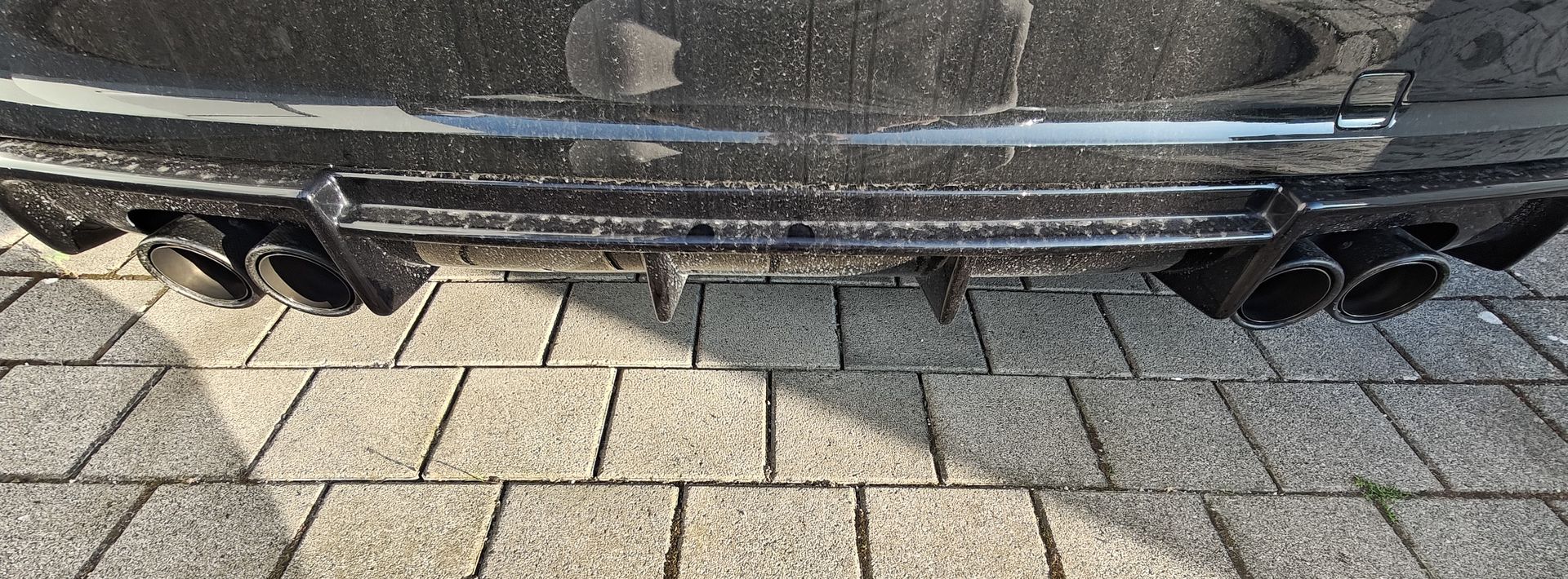 Ehrlich gesagt weiß ich aber nicht wie ich das ausbessern soll. Ich habe die AGA an verschiedenen Punkte gelöst und versucht anders auszurichten (in der hoffnung, dass es nicht wieder anfängt zu klappern), aber ohne erfolg. Anschließend hatte ich den Diffusor von Rieger im Verdacht, dass der irgentwie nicht richtig Montiert ist. Also habe ich am Diffusor mal die Abstände zur Stoßstange gemessen, war aber alles gleichmäßig. Habe trotzdem mal alle Schrauben gelöst und versucht das irgentwie zu tuschieren, aber keine Chanche. Auf alten Bildern mit der OEM AGA und dem Rieger Diffusor sah das noch sehr gut aus, also muss das Problem doch bei der Grail sein. Der Endtopf ist parallel zum Boden, also der Abstand zwischen Endtopf links und rechts ist identisch.