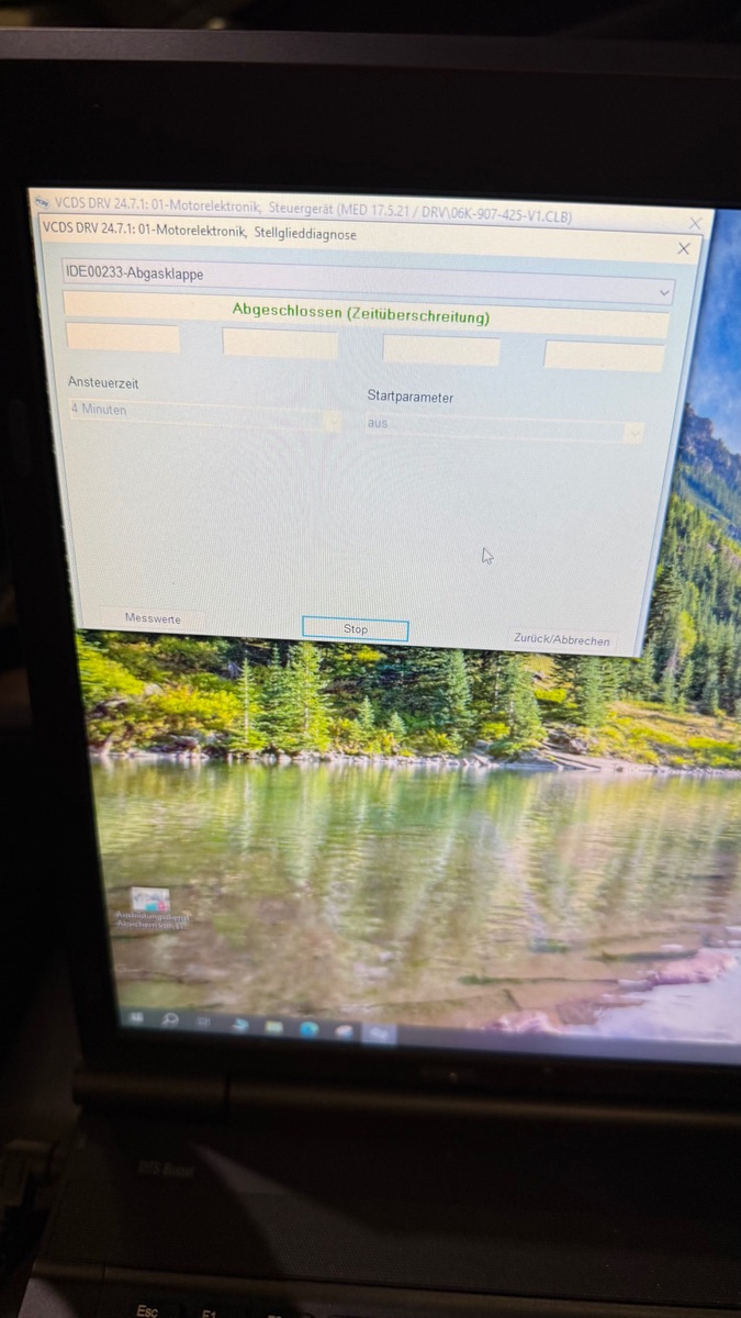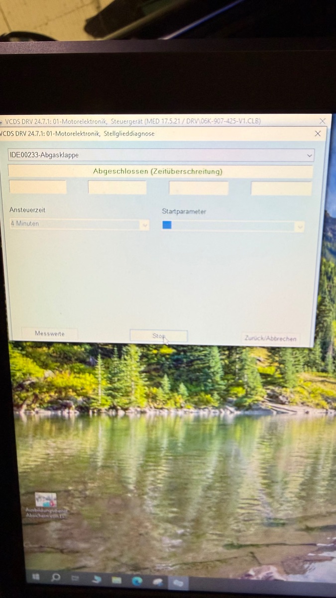 Bei der Stellglied Diagnose ist mir dann aber aufgefallen, das wenn die Klappen angesteuert werden, dies sehr lange dauert bis diese reagieren und nach 2x auf und zu fahren geht VCDS in die Zeitüberschreitung (siehe Fotos).