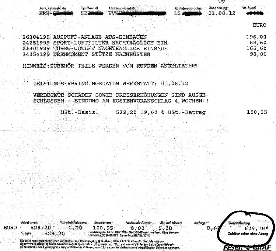 vorbeifahre und mir einen Kostenvoranschlag machen lasse für folgende Sachen zum Einbau: