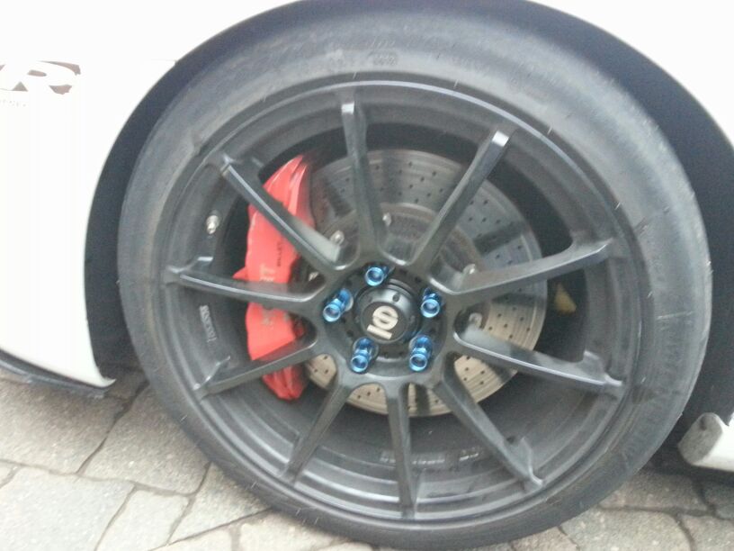 Gestern nachdem die 10 mm Distanzen angekommen waren, die wie gesagt nötig sind bei Sparco Assetto Gara 8x18 et 48, wurde die bremse mit Ate Blue Racing Flüssigkeit befüllt, hinten noch stahlflexleitungen montiert und entlüftet. Montiert sind Pfc 08 Beläge!