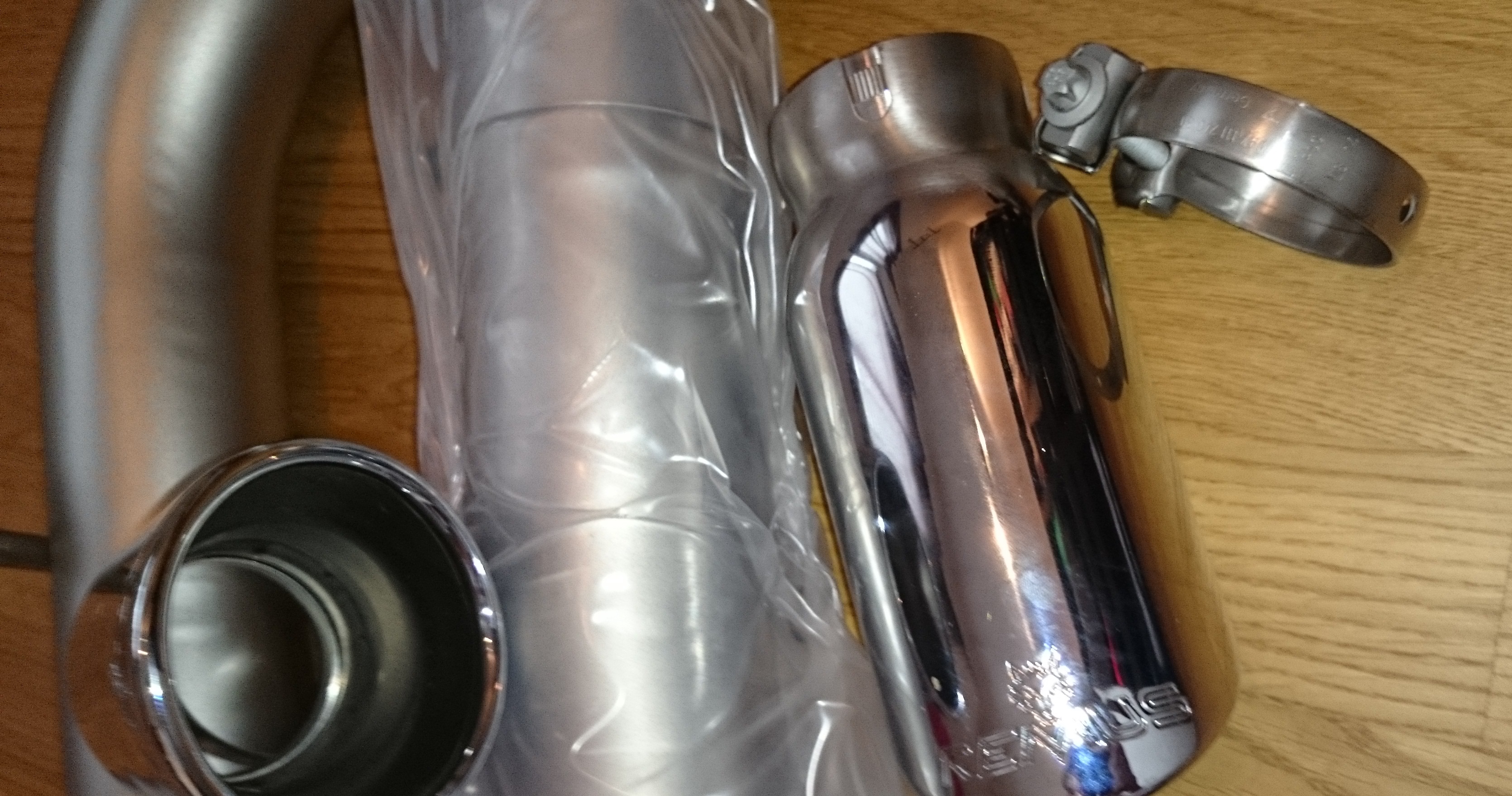 Nach zwei gescheiterten Versuchen eine Bastuck zu montieren (siehe Bastuck Thread), habe ich mich für die 76mm Remus Cat-Back entschieden. Nach gut 3 Wochen ist die Remus gekommen. Von der Bastuck vorbelastet habe ich zuerst überprüft, ob alle Rohre ineinander passen... und siehe da, die Passgenauigkeit ist top!