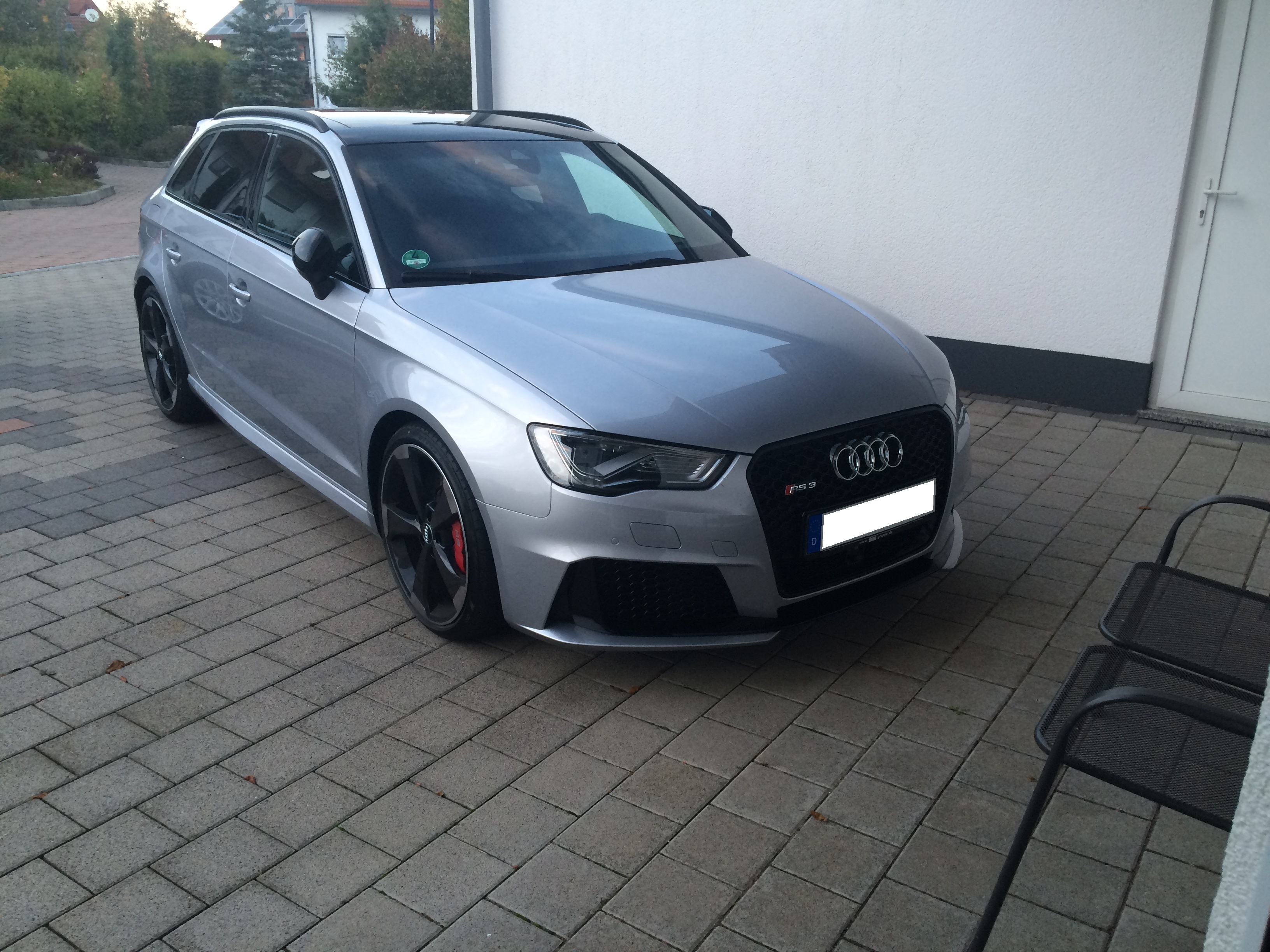 Dann wurde ich auch via Mobile auf einen florettsilbernen RS3(Lagerwagen/Neufahrzeug) aufmerksam, der es dann auch wurde. Ausstattung etwas üppiger als ich ihn bestellt hätte (Panoramadach und Assistenzpaket).