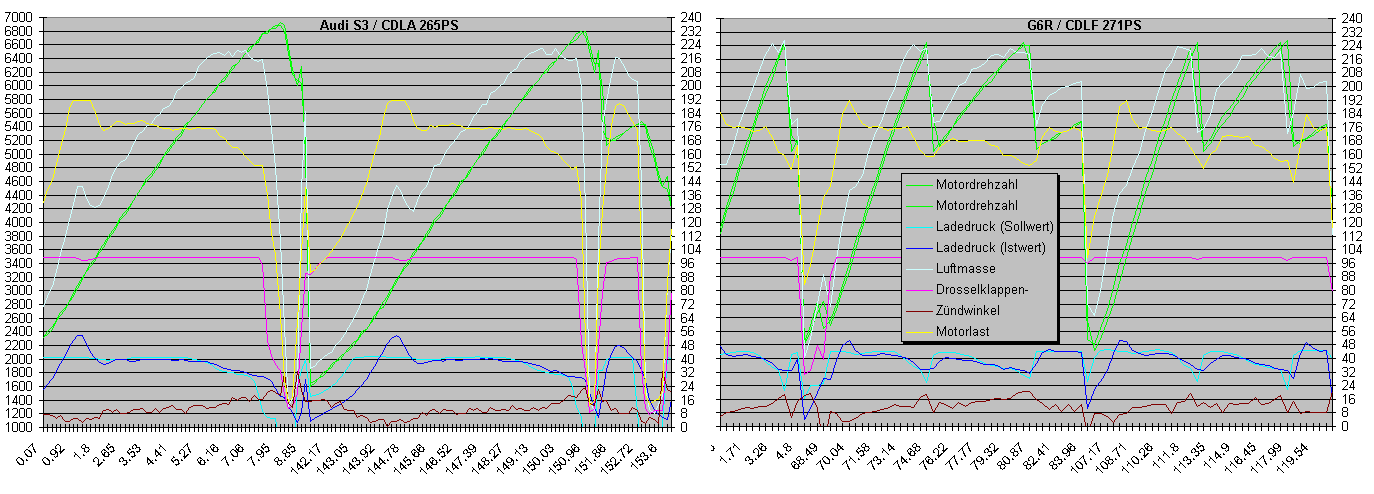 VCDS_Logs eines CDLA mit Seriensoftware zeigen ca. 219g Luft pro sec ab ~5800rpm: