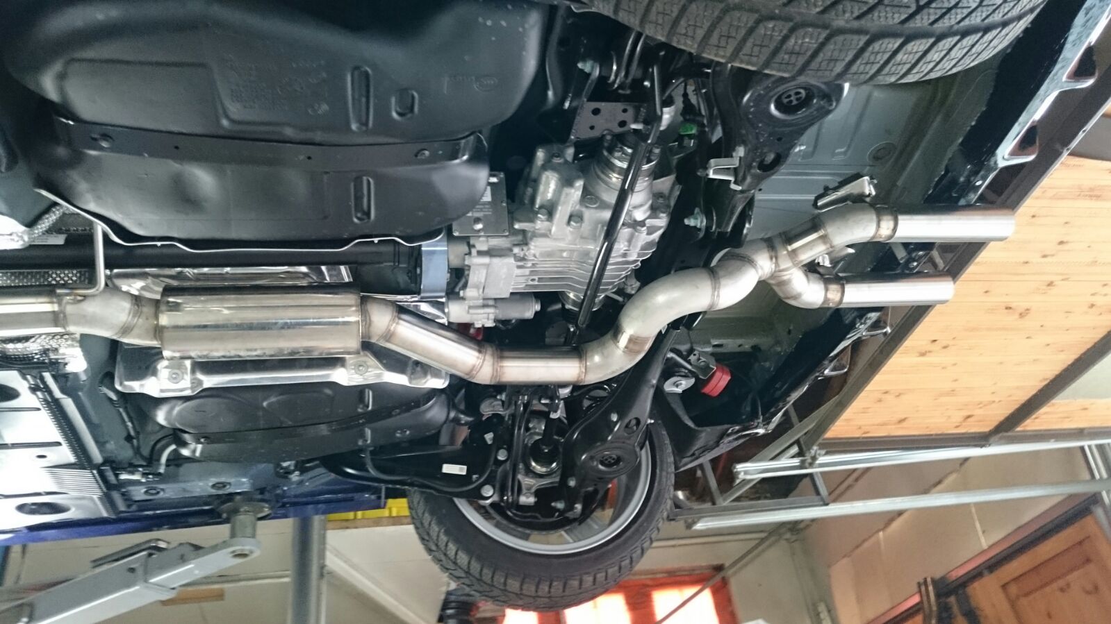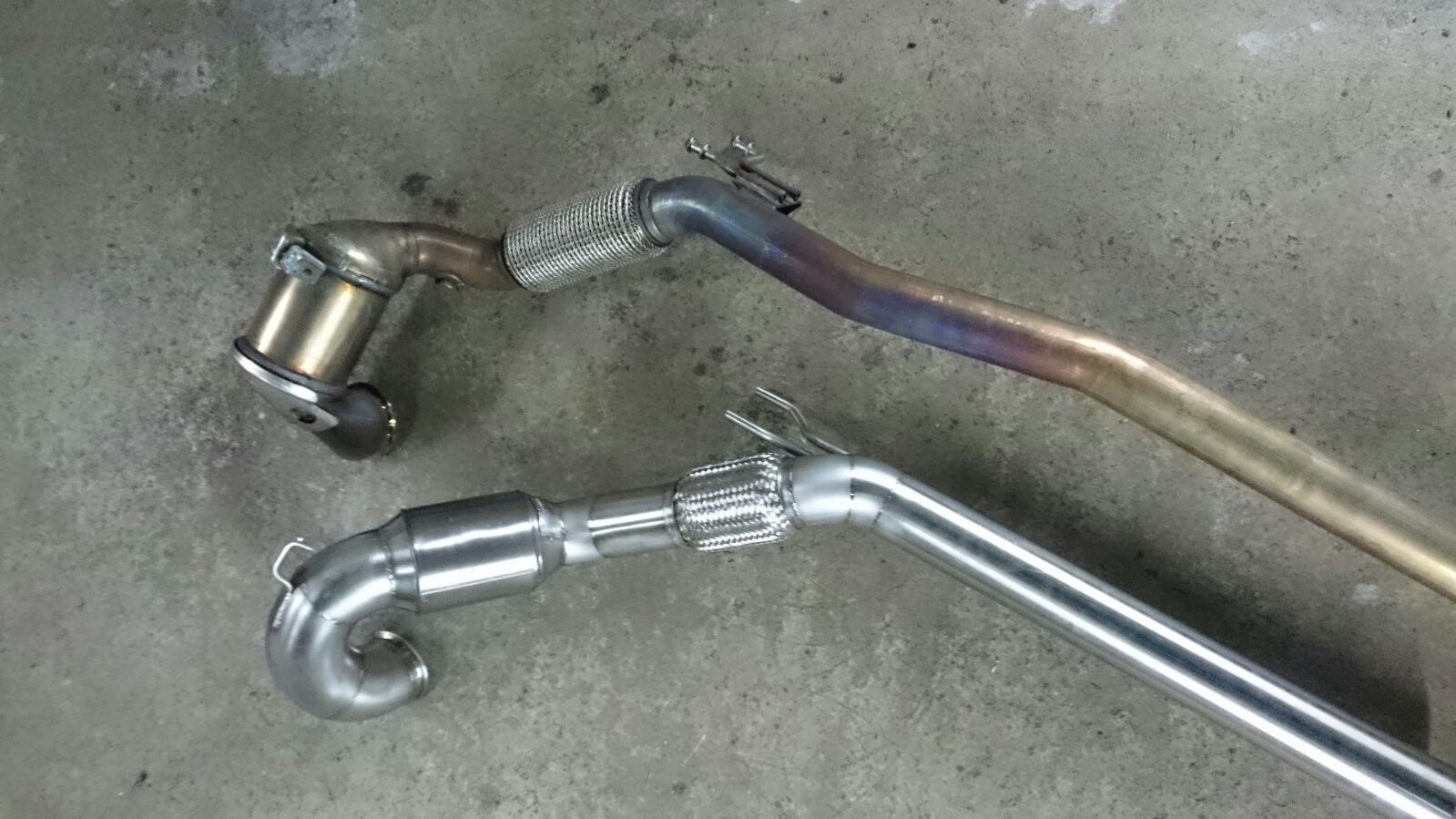 3,5" Downpipe mit 200Zellen HJS Kat ist der perfekte Anfang, gefolgt von einer durchgehend 3" großen Verrohung.