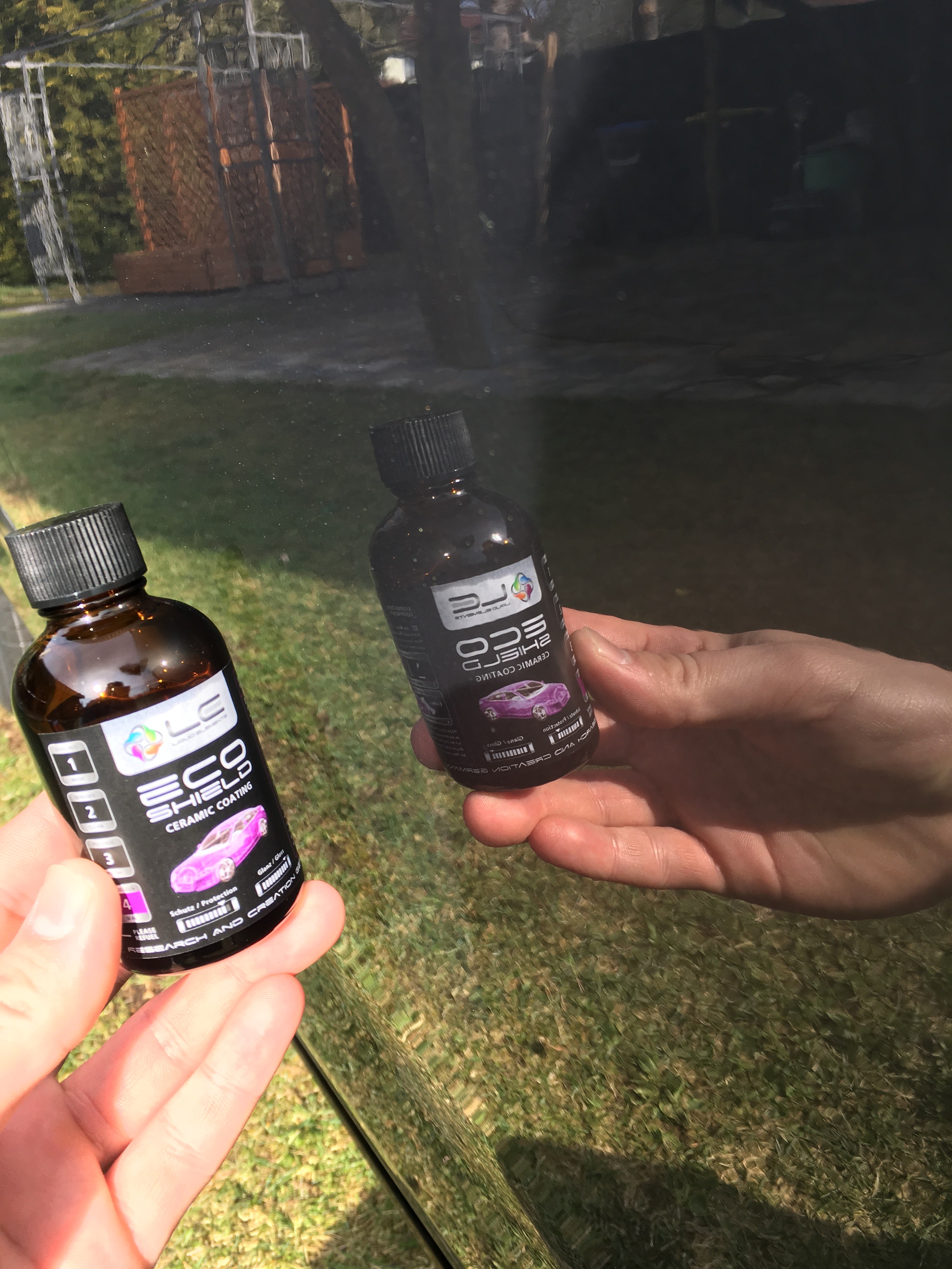 Der Lack würde Versiegelt mit Liquid Elements Eco Shield, die Scheiben mit Ombrello und die Felgen mit Gyeon Rim