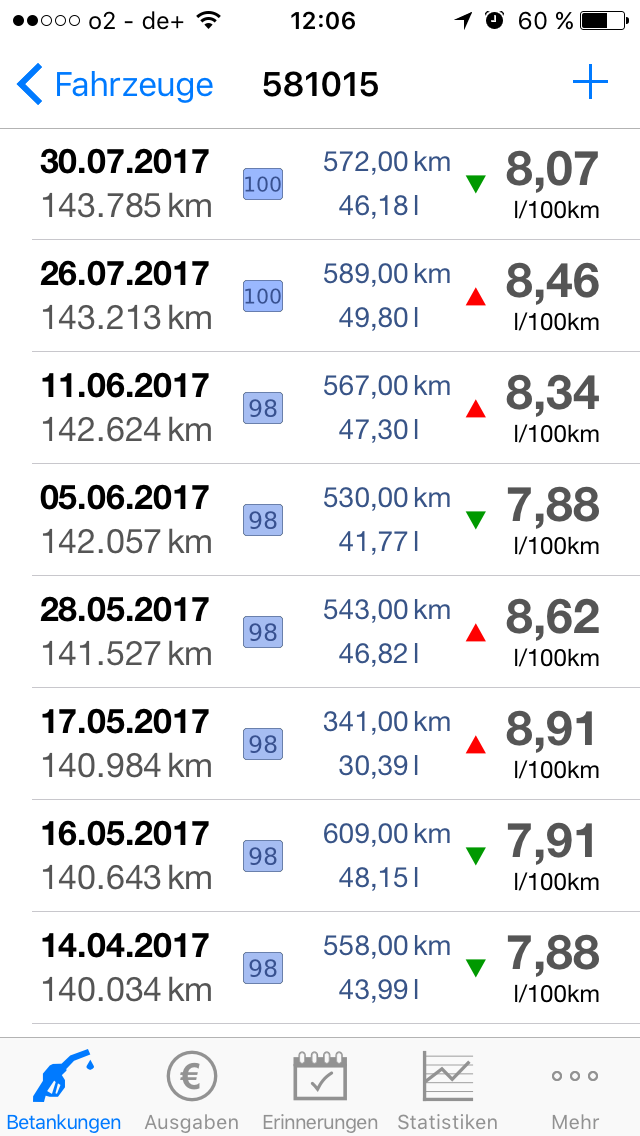 überschlagen und es macht bei meinem Verbrauch zum Super Plus eine Differenz von
