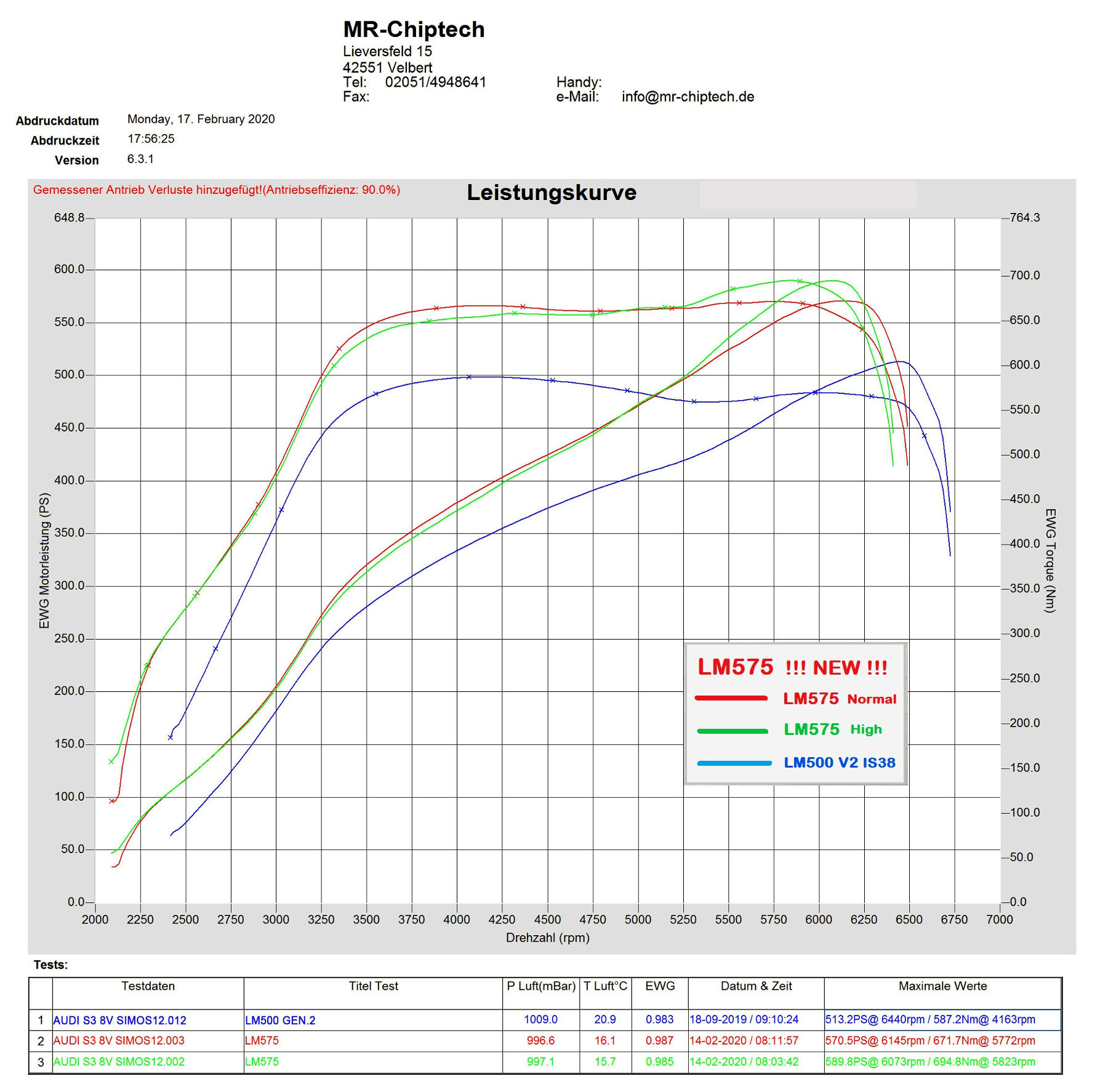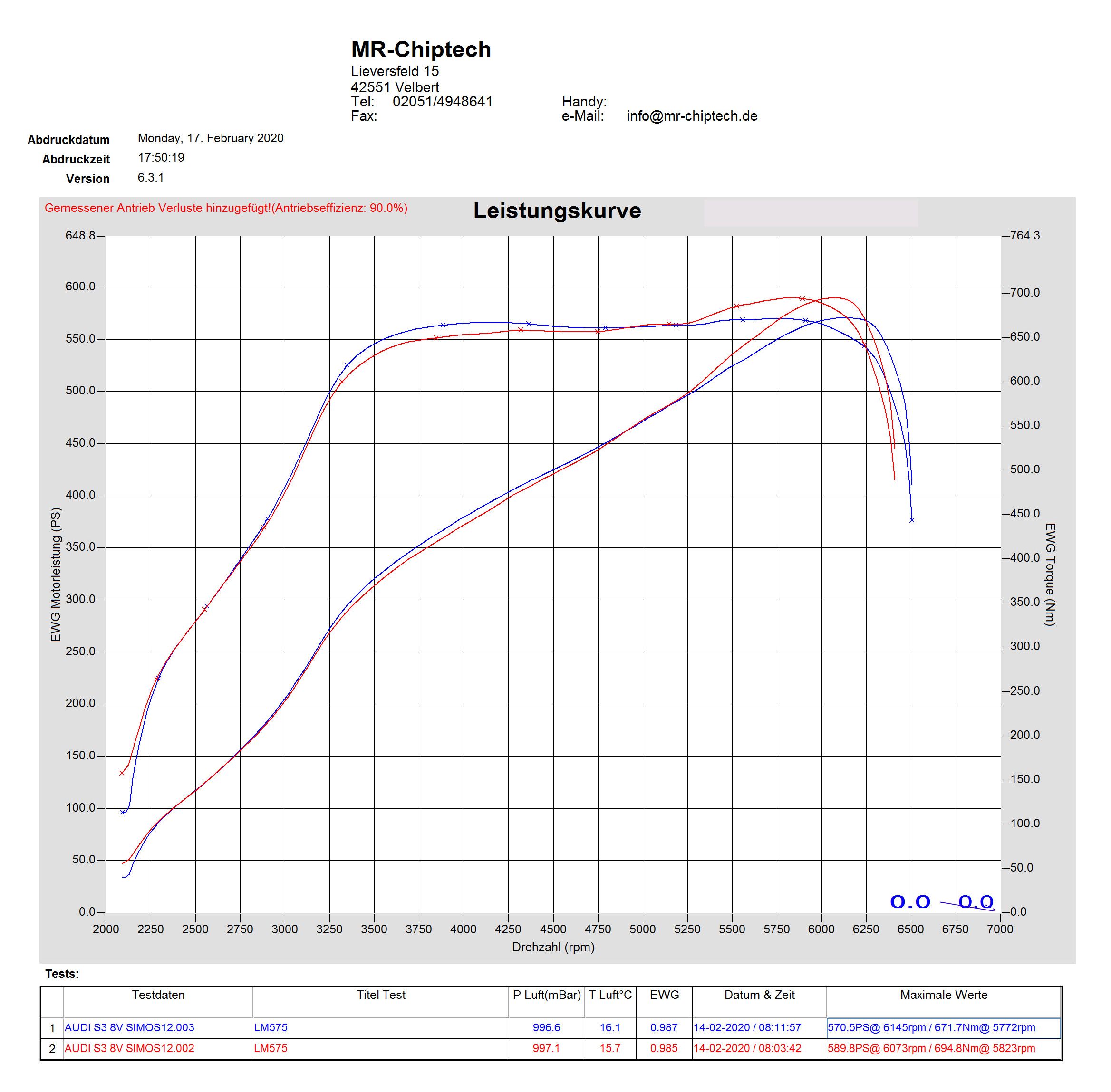 - Das Serienfile mit 310 PS / 400 NM vom Golf 7 R FaceLift liefert ordentlich Power (Map 2).