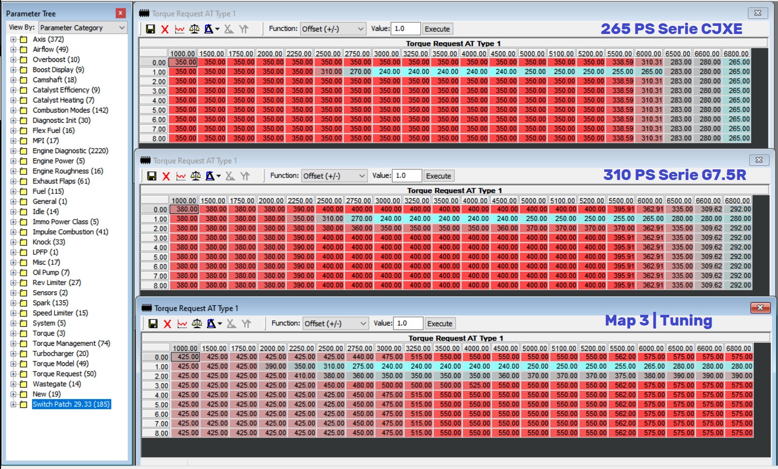 - Der Unterschied von Map 1 Serie (265 PS / 350 Nm) zu Map 3 (380 PS / 480 NM) ist am stärksten.