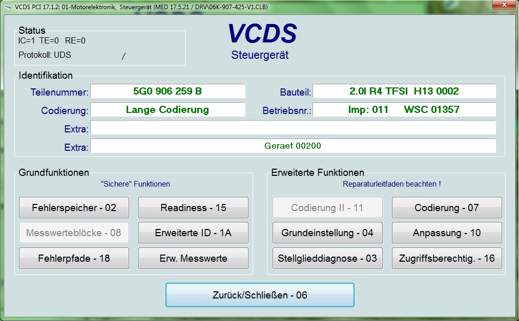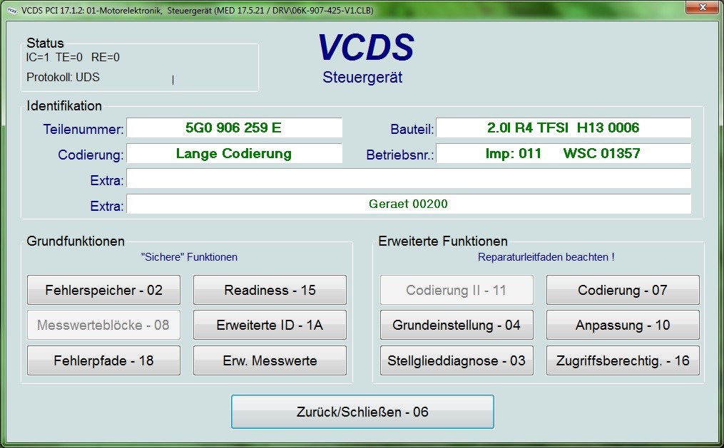 Ich hab mittels VCDS mein Steuergerät ausgelesen, hier die Daten dazu: