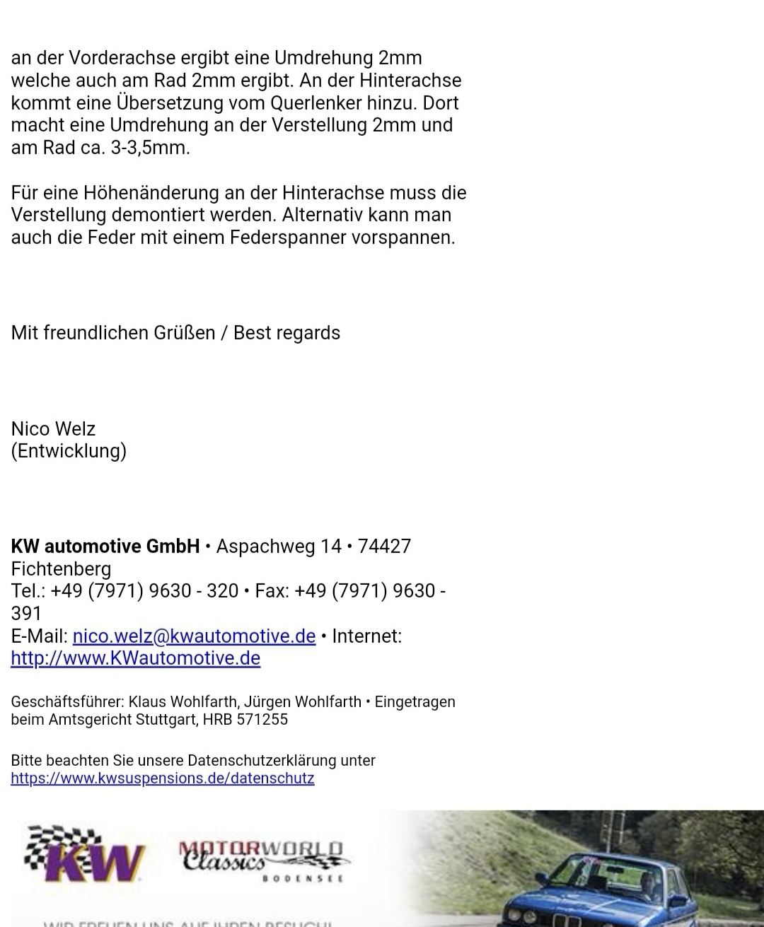 Hinweis: Ich fahre auch keiner Rennstrecke und bewege den Wagen eher gediegen, also nicht sportlich.