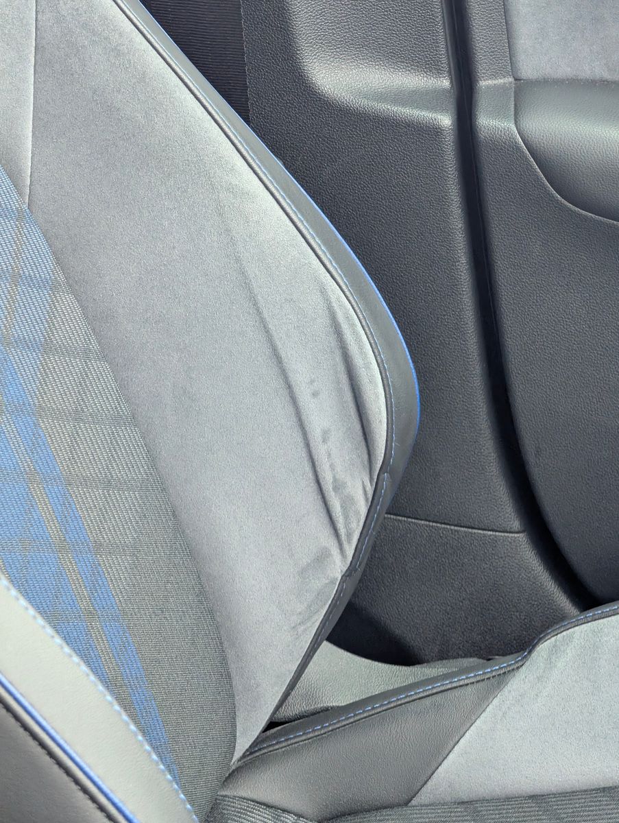 Der Sitzbezug hat sich verzogen weil der Schaumstoff innen gebrochen ist. Lässt sich eindeutig erfühlen.