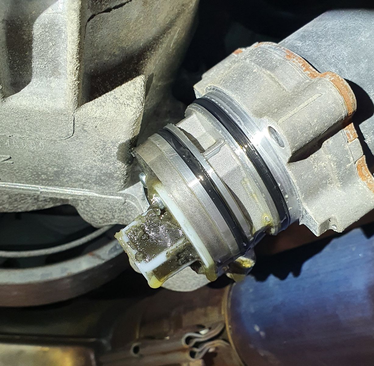 Bei der letzten Inspektion wurde das Haldex-Öl getauscht und das Pumpen-Sieb gereinigt. Sah für 27tkm echt siffig aus....