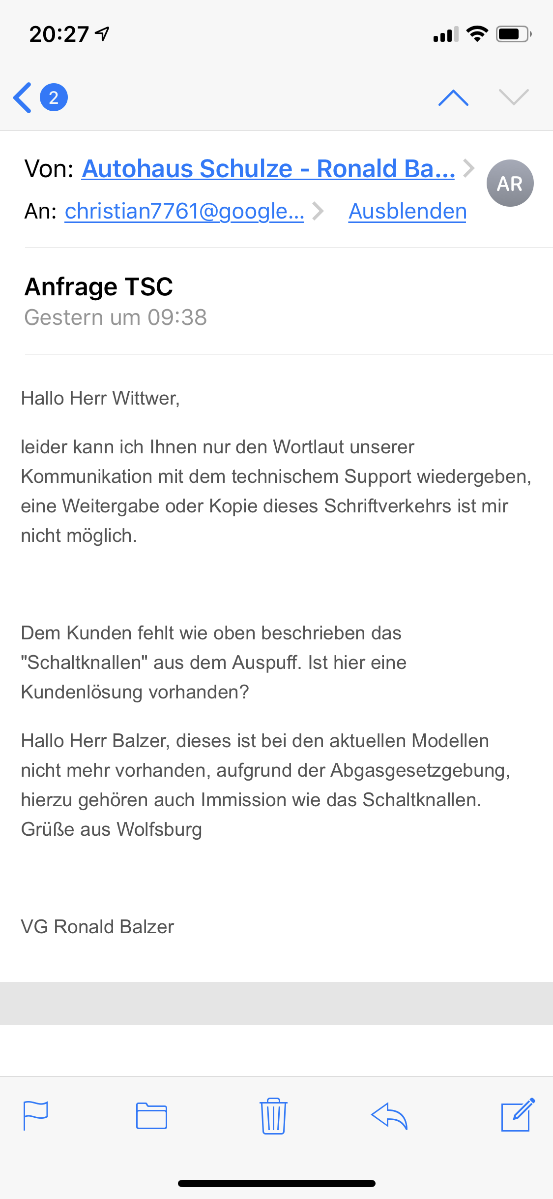Damit hat sich der Akra in meinen Augen definitiv nicht gelohnt... (hab auch mit Akra bestellt)Genauso seh ich das auch. Aber vielleicht gibts es ja demnächst eine Lösung von Tunern die das DSG knallen programmieren können.