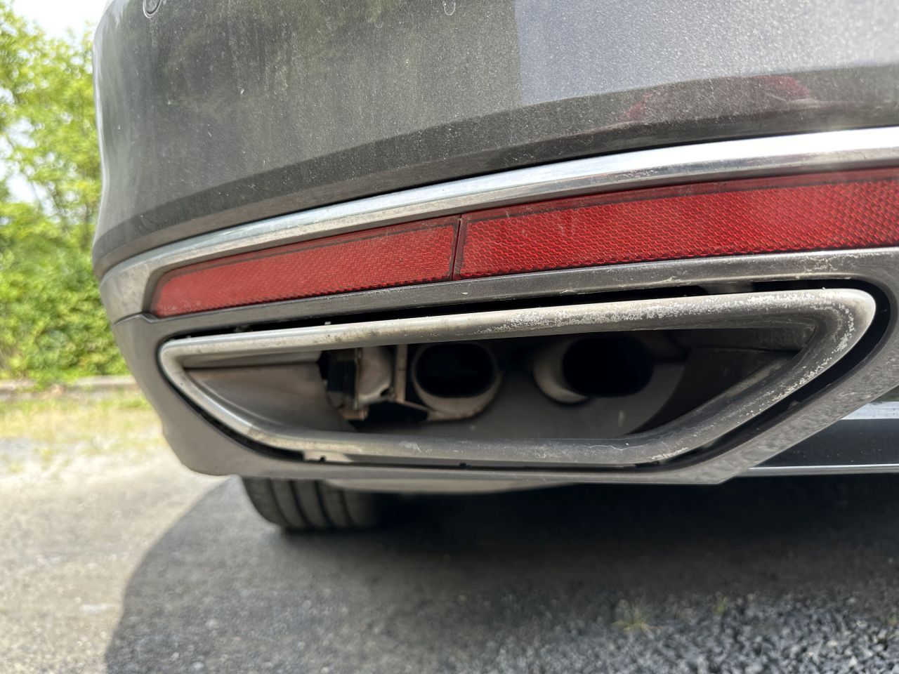 Das stimmt so nicht, beim Passat mit Klappe gehen die 4 Rohre gerade nach hinten und enden in einer offenen Edelstahlblende.