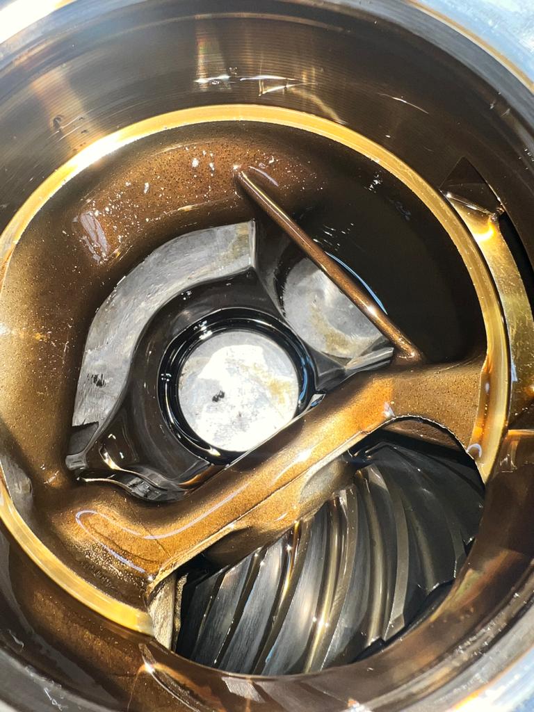 Da durch das Leck (Punkt 1) das Differentialöl entwichen ist, wurden die Differentiallager oder das Trieblingslager nicht ausreichend geschmiert. Sie sind trocken gelaufen und haben dadurch starken Abrieb erlitten.