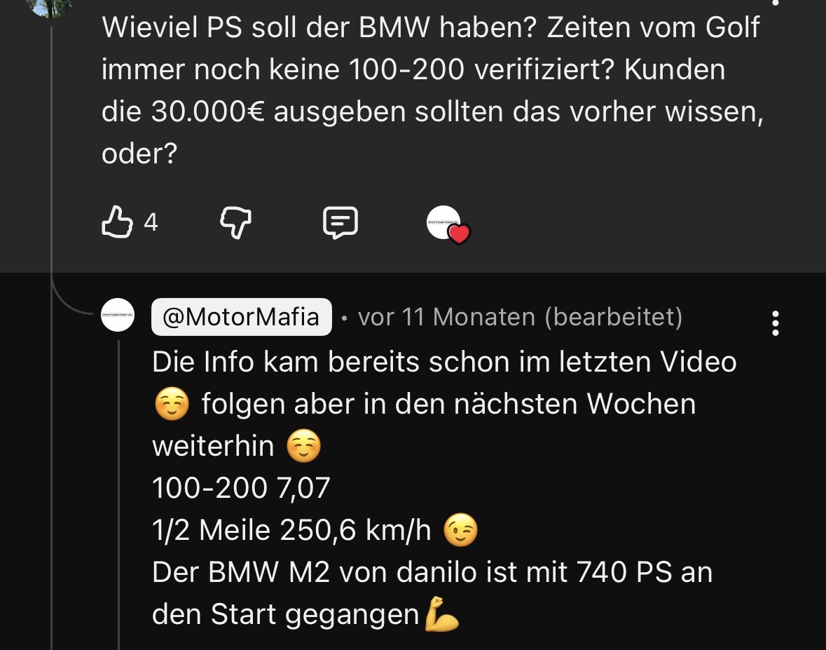 Moin, ich schaue schon lange die Videos von mcchip. Ich muss sagen, durch die Reihe hinweg fahren die ganzen Autos von dort für die gemessene Leistung „schlechte“ Zeiten. Keine Ahnung woran das liegt, kannst dich selbst überzeugen und schauen.