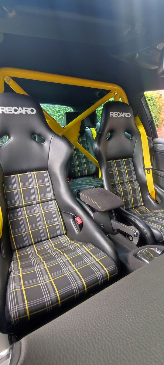 Habe schon Lange nicht mehr Dokumentiert...Da mein Lader Das Zeitliche Gesegnet hatte und Ordentlich Öl drückte unter Vollast Habe ich im Winter einen neuen Lader Eingebaut.Anschließend Ging es Zur 1/4 meile Aldenhoven wo ich eine 12.2 sek. (Reine Fahrzeit) gefahren bin (Am Ende 179Kmh)...100-200 11.2 Sek... Dachhimmel A/B/C Säule habe ich mit Schwarzen Stoff(Originaloptik/Struktur) Bezogen....Die Rückbank ist wieder Im Auto Gelandet Mittelteil ist Passend Zu Den Poles Bezogen Worden.Gelbe Gurte gabs auch Natürlich mit Tüv..Die Hifi Anlage habe ich noch ein Wenig Verbessert...Frontsystem und ein Kleiner Sub Sind unter dem Beifahrersitz Gelandet.Bischen Alcantara mit Gelber Naht Sowie eine Domstrebe vorne gabs auch.Felgen Haben Noch CenterLock Deckel Bekommen...Dort habe ich den Deckel Schwarz Foliert und er hat einen Gelben Porsche Turbo Schriftzug bekommen....Derzeit bin Ich Fleißig Carbongewebe am Laminieren....Bzw Die Türpapen Bekommen Auch etwas Alcantara ab....(Und natürlich Sichtcarbon)