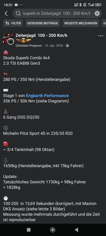 Das wird strömungstechnisch alles andere als gut sein.. in der Facebook Gruppe Zeitenjagd 100-200 hatte mal jemand seinen nen Skoda Superb mit 280ps TSI gemessen.