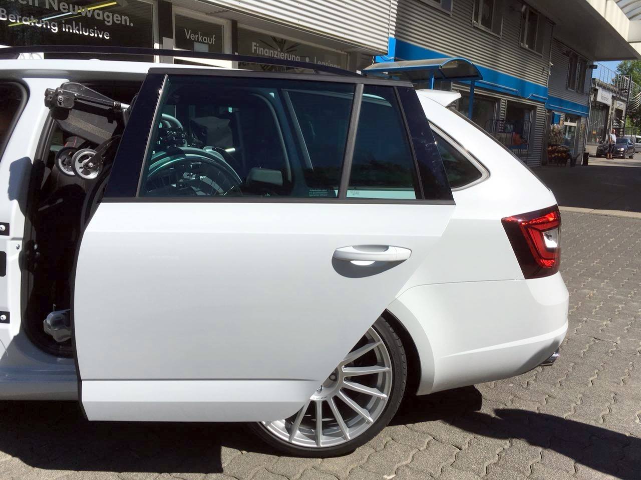 Der Skoda wird in Düsseldorf angeliefert und vo da aus direkt zum Umrüster gebracht.