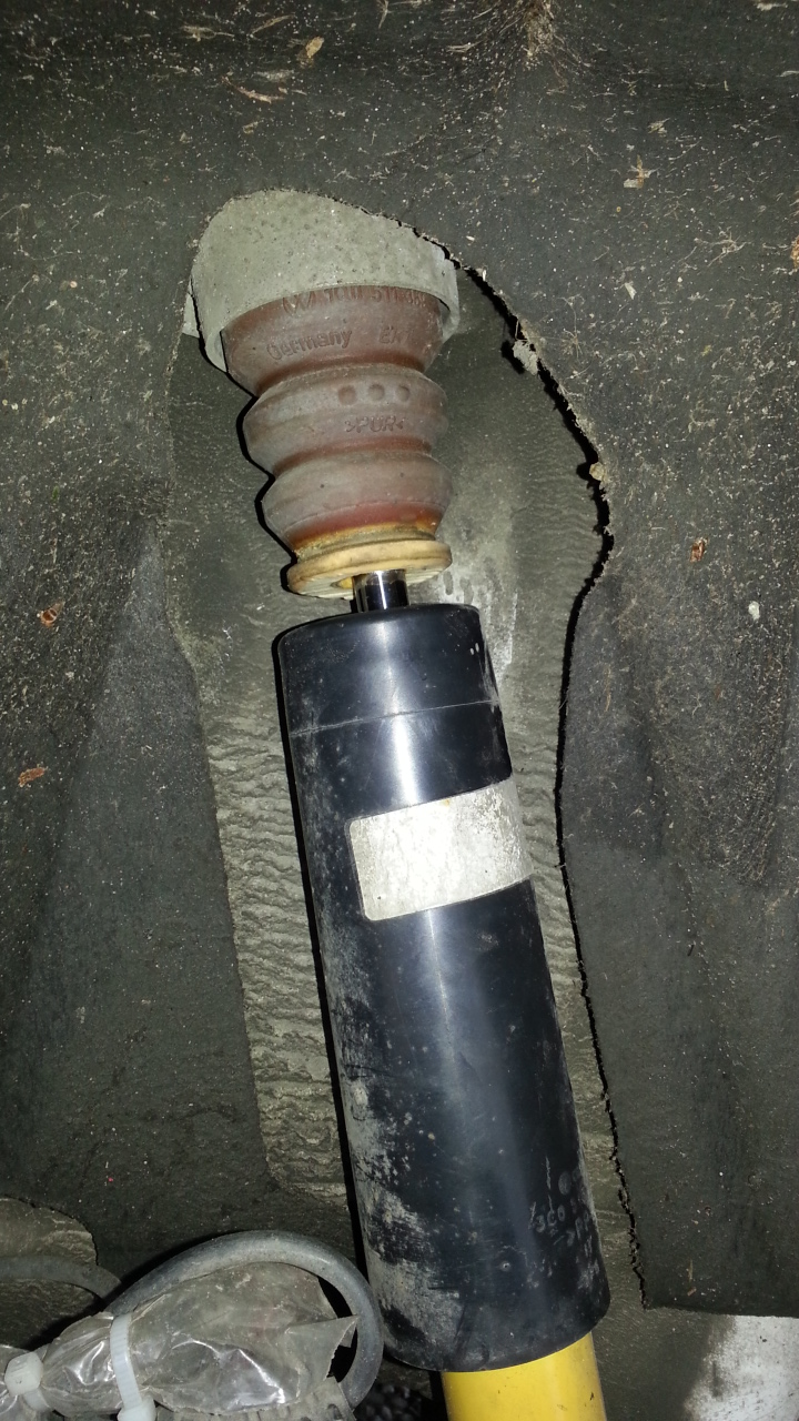 Ich habe ein kleines "Problem". Habe das H&R Tiefe Version verbaut. Jetz bin ich letztens mal ohne Radio herumgefahren und mir ist ein Klappern aufgefallen. Schon beim geringsten Einfedern klappert es an der Hinterachse. Wenn ich mich in den Kofferraum setze und wippe, hört man es deutlich auf beiden Seiten. Heute haben wir das Rad demontiert und das Auto auf Hölzern abgestellt und wieder eingefedert. Da war es wieder zu hören. Nach langer Suche sind wir fündig geworden. Die Schutzhülle für die Kolbenstange schlägt am Dämpfer an. Ich habe mal ein Bild von der ausgehängte Hülle gemacht. Viel Platz vom Begrenzer bis Anfang Dämpfer ist nicht mehr da, selbst wenn der Dämpfer völlig ausgefedert ist.Gibt es hierfür spezielle Hüllen? Ich habe dann von hinten in die Hülse geschaut und konnte erkennen, dass zwar der Begrenzer zu sehen ist, aber der Ring von der Hülse befindet sich zwischen Begrenzer und Dämpfer. Ist bissl komisch zu erklären, ich hoffe ihr versteht es?? :confused: Soll ich die Hülse ausbauen und den Ring entfernen oder hält diese dann nicht mehr am Begrenzer? Ganz ohne will ich nicht fahren!!