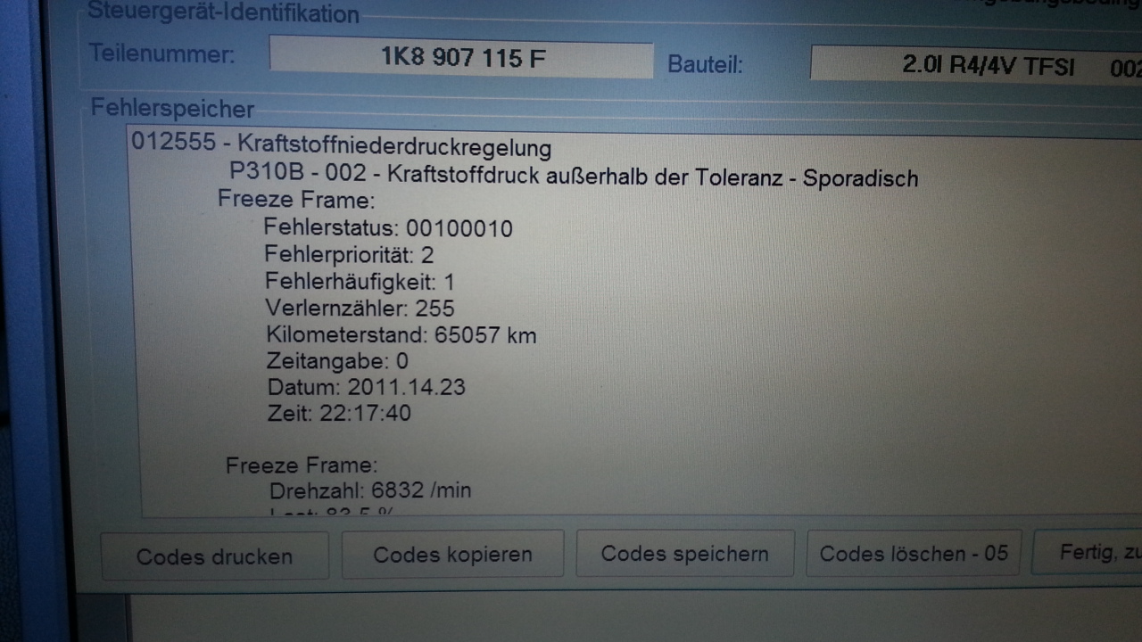 Zipf und ich wollten gestern bissl codieren. Beim Fehlerauslesen kam me komische Meldung. Hab mal ein Foto davon gemacht. Laut Tobi ist es die Vorförderpumpe. Gibt es da guten Ersatz bzw. ne verstärkte??