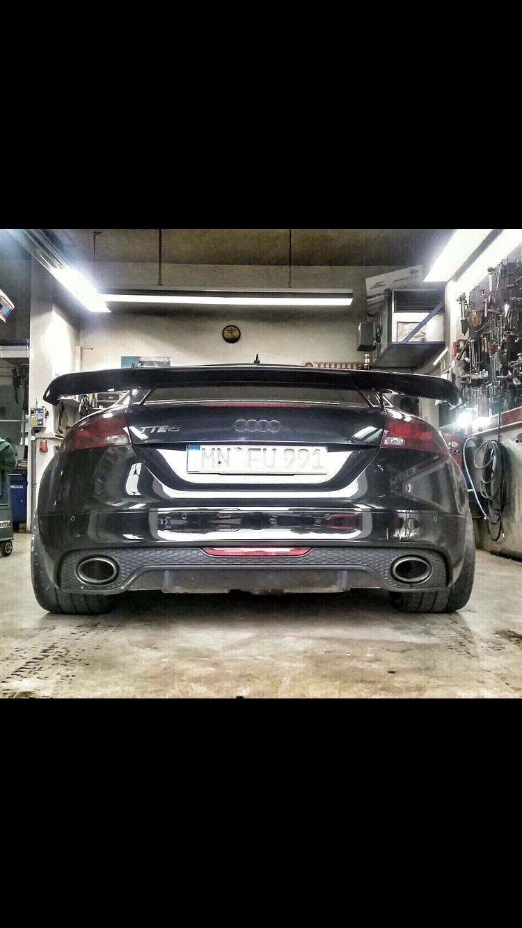 . Aufn ersten Blick sieht man nicht das der TTRS um ca. 5cm pro Seite verbreitert wurde damit die 10x18 Zoll ET33 Felge mit den 285igern ( 302mm gemessen ) Michelin Cups ohne Probleme drunter passt.